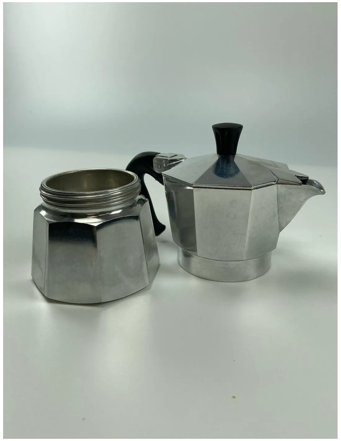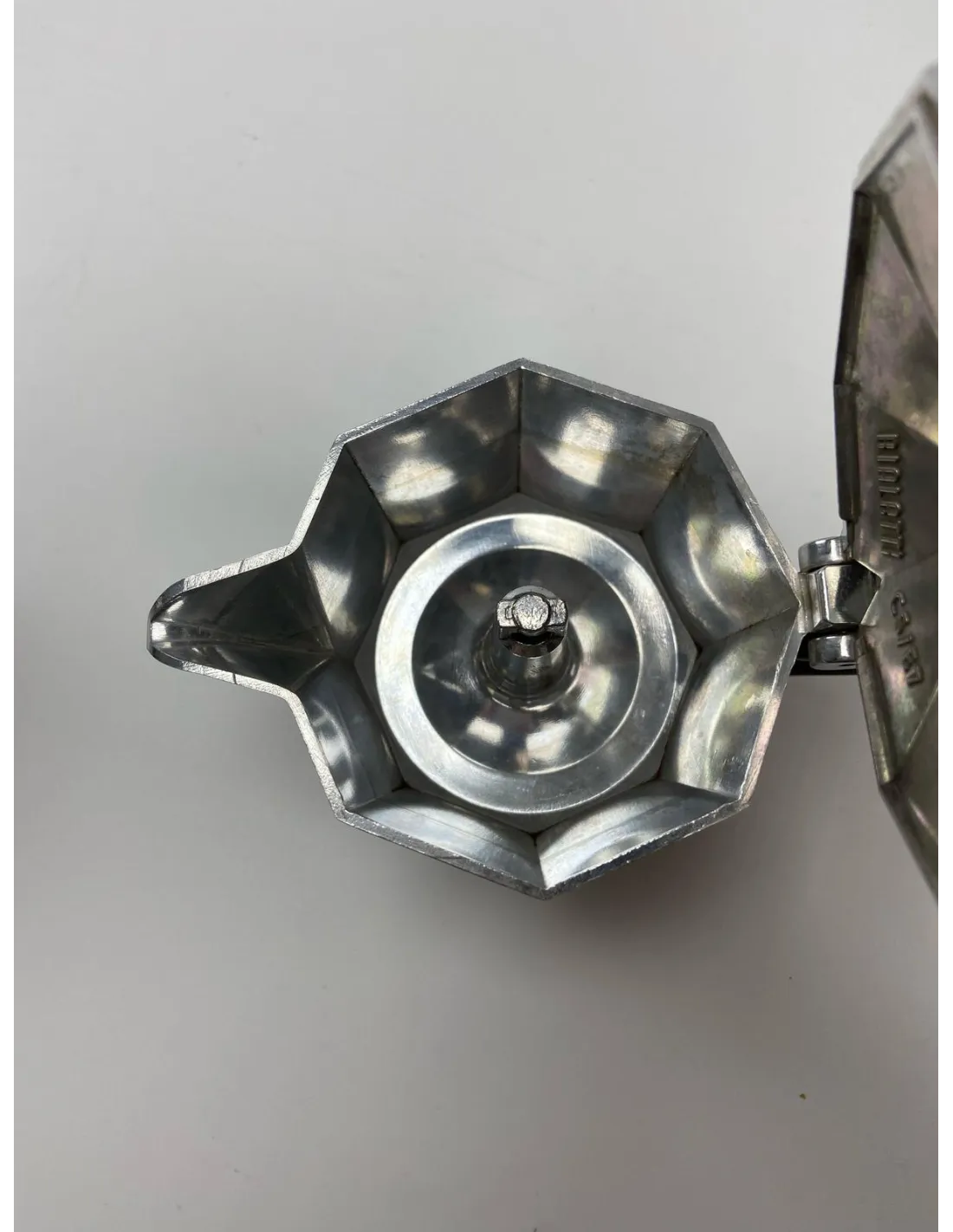 Legendarna kawiarka Moka Express włoskiej firmy Bialetti do tradycyjnego przygotowywania mocniejszej kawy. Nadaje się na 3 filiżanki, tj. ok. 150 ml. Używany/zdyskontowany.