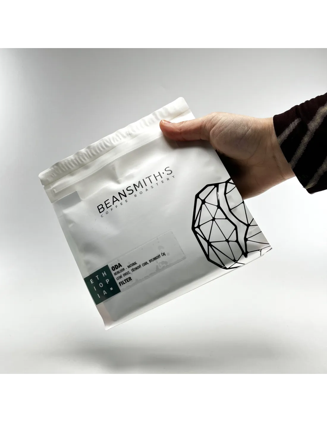 Stacja myjąca Oda w Uraga, Guji (Oromia), znajduje się na dużej wysokości, gdzie kawa rośnie w cieniu rodzimych lasów. Około 1800 drobnych rolników dostarcza wiśnie, za które w tym roku otrzymali 35% więcej niż średnia. Ta partia to mieszanka etiopskich odmian Heirloom, obejmująca setki drzew kawowych. Po ręcznym sortowaniu wiśnie są suszone na afrykańskich łóżkach przez około 20 dni. Uraga oferuje piękne krajobrazy i wyjątkowe smaki.