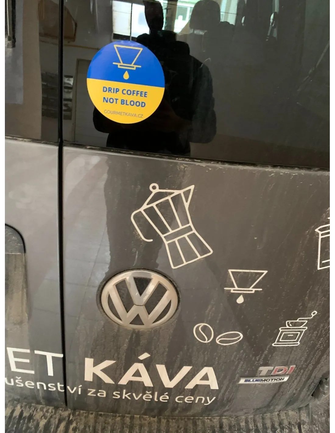 Kupując naklejkę DRIP COFFEE NOT BLOOD , przyczynisz się do jednej z największych zbiórek humanitarnych na rzecz Ukrainy organizowanych przez organizację Ludzie w Potrzebie.