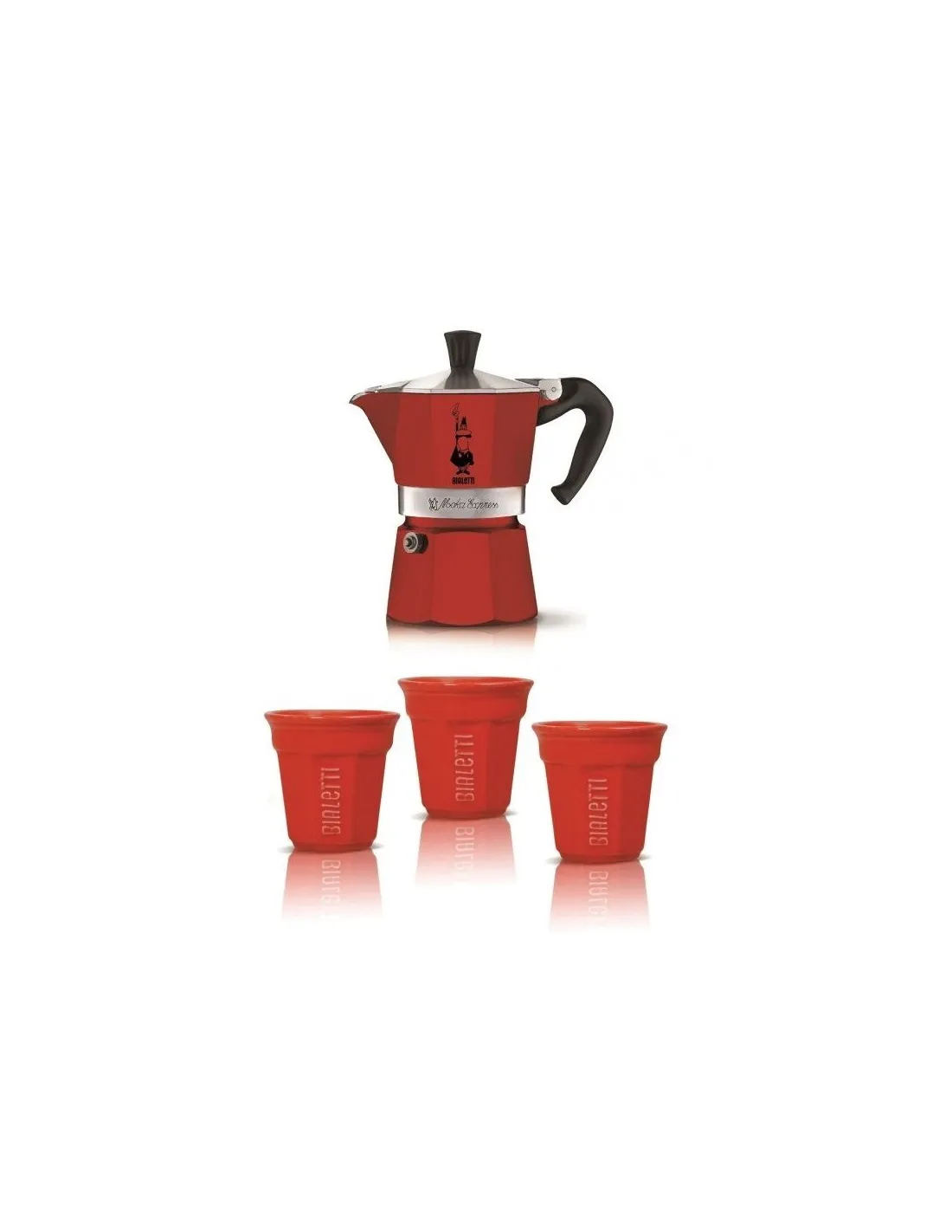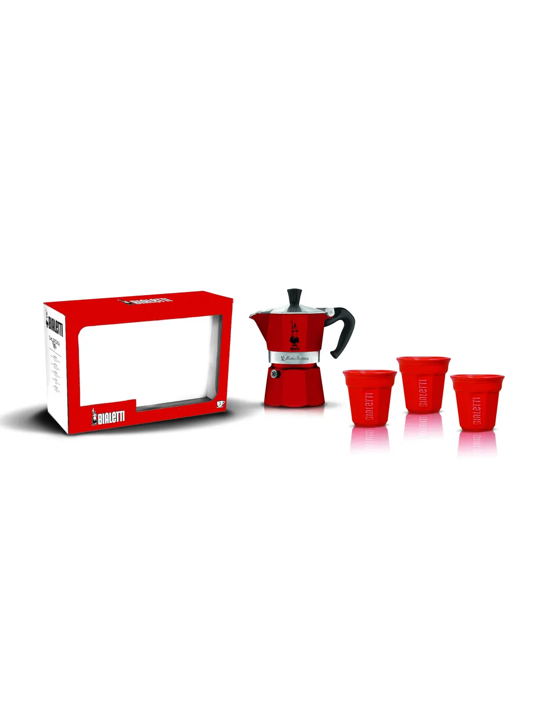 Zestaw upominkowy Bialetti moka express 3 porcje + 3 filiżanki, czerwony