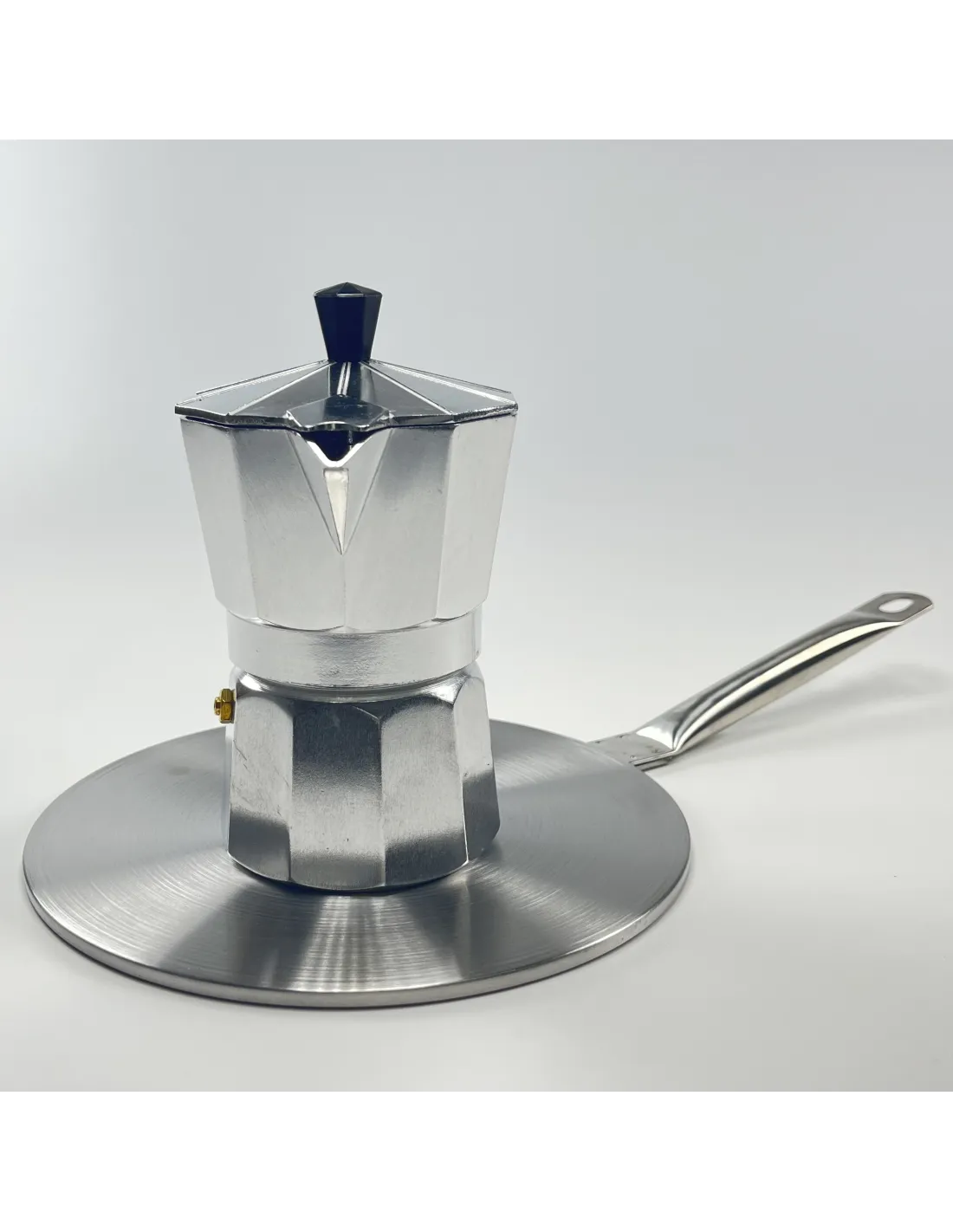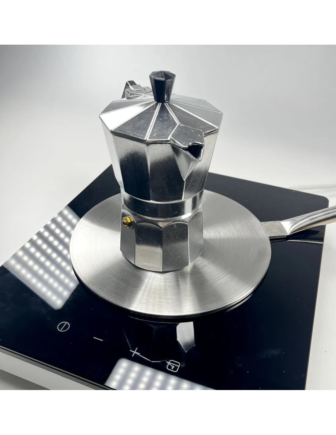 Suport de inducție Kaffia 19 cm este ideal pentru utilizarea pe plitele cu inducție cu vase nemagnetice. Este perfect pentru prepararea cafelei în cafetiere moka din aluminiu de diferite diametre, dar poate fi folosit și cu alte vase, cum ar fi oalele.
