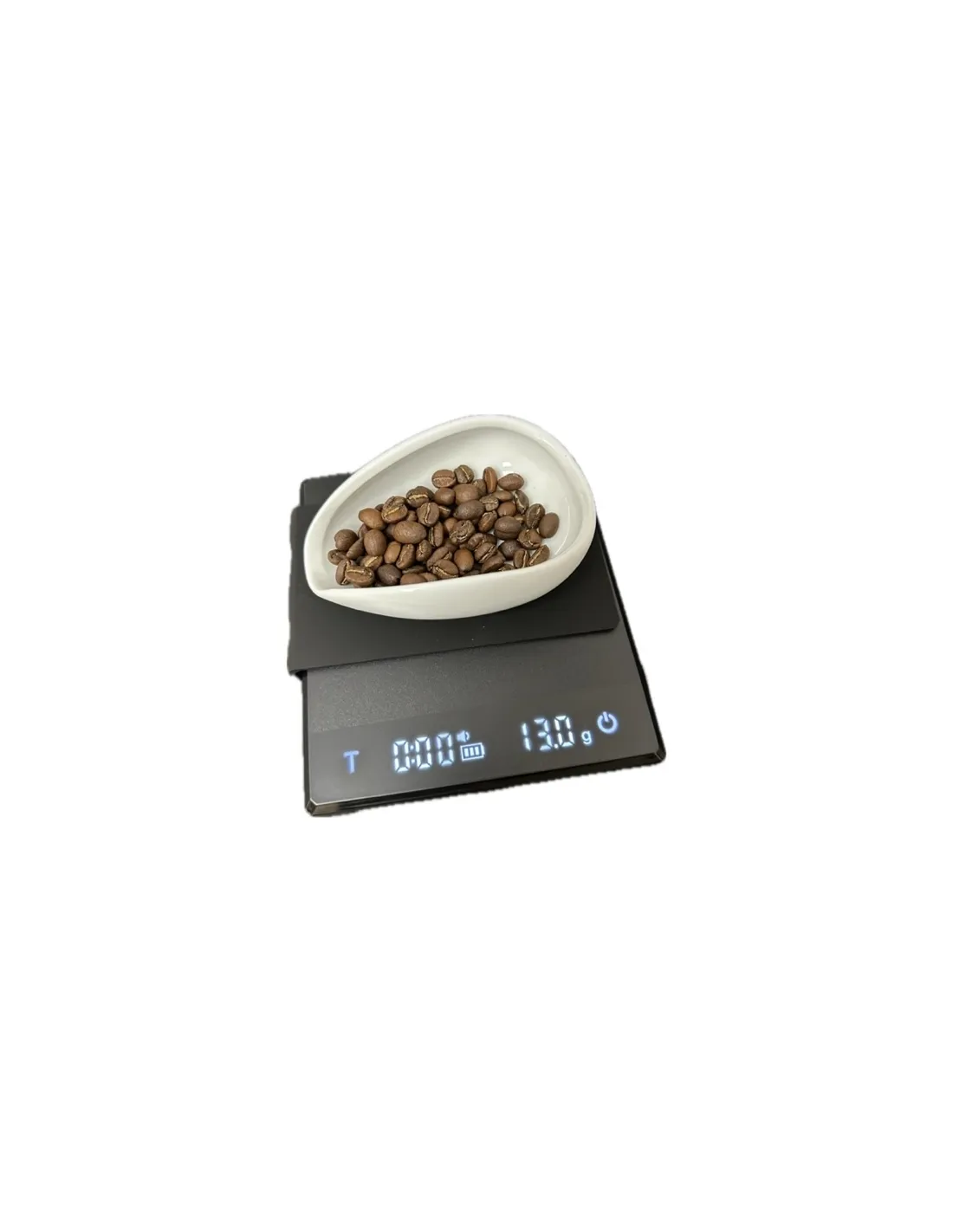 Tava de dozare din ceramică Kaffia vă ajută să vă cântăriți boabele de cafea sau ceaiul. Datorită gâtului larg, este posibilă dozarea boabelor fără teama de a scăpa mai mult decât se dorește.