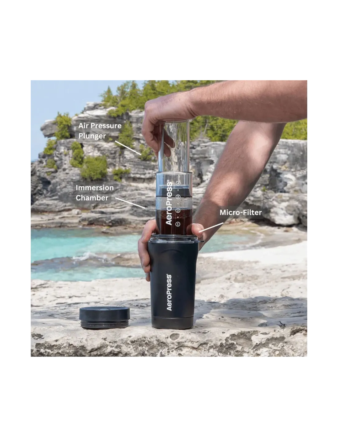 Vă puteți bucura de cafea delicioasă în mișcare cu AeroPress Go Plus, concepută special pentru călători. Cu materiale durabile, nu trebuie să vă faceți griji că veți rămâne fără rezerva de cafeină, indiferent dacă vă aflați în camping, la hotel, în vacanță sau oriunde altundeva în mișcare. De la despachetare, la preparare, la împachetarea cafelei, întregul proces de preparare durează aproximativ 2 minute.