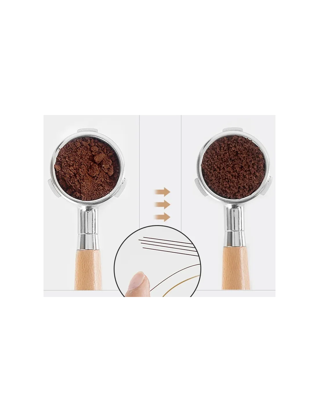 Distribuitor cu ac (WDT) pentru o distribuție uniformă a cafelei în pârghie.