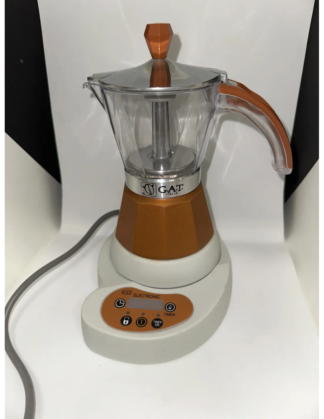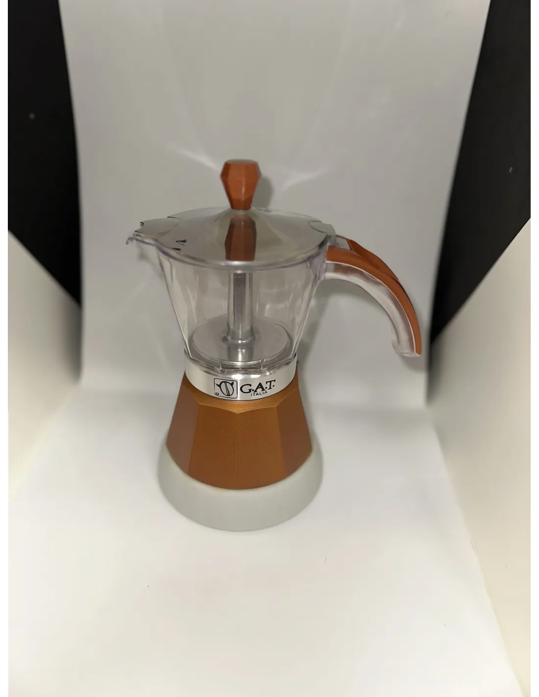 Oala electrică moka G.A.T. Vintage de 4-6 cești pentru prepararea unei cafele puternice și proaspete oriunde te -ai afla. Culoare: maro. Ceainicul este folosit și fără ambalaj - REDUCERE.