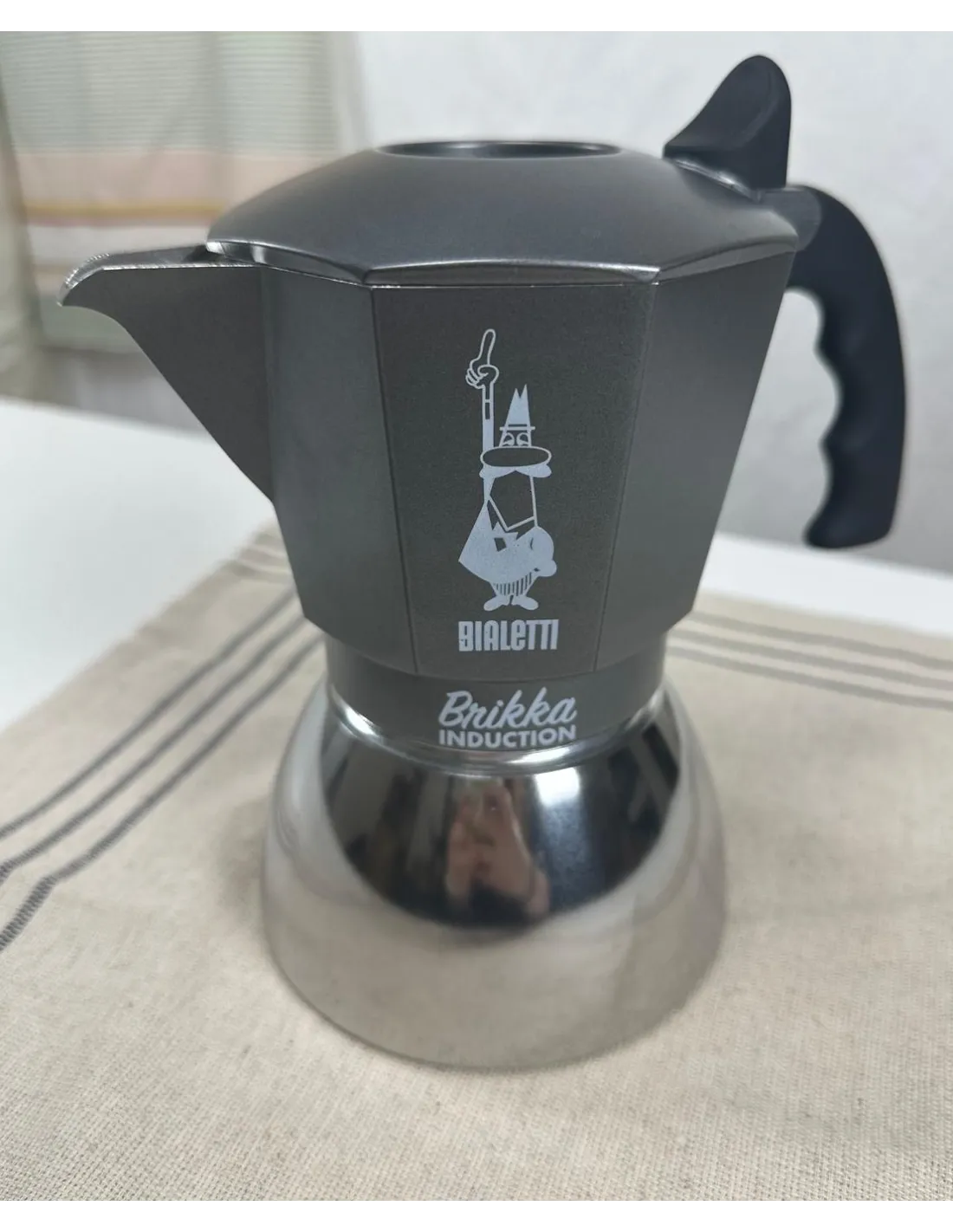 Bialetti Brikka este fabricată din aluminiu de calitate alimentară, iar mânerul confortabil este din plastic. Articolele de gătit din aluminiu tind să fie nepopulare, dar în acest caz nu este așa. Interiorul cafetierei se va acoperi cu o patină după un timp de utilizare și va absorbi gustul cafelei. Datorită acestui gust și a simplității întregului aparat, "Bialettes" sunt atât de populare în întreaga lume. Acum, varianta populară din aluminiu poate fi folosită și de posesorii de aragazuri cu inducție! Recipientul de jos este fabricat din oțel inoxidabil magnetic:)