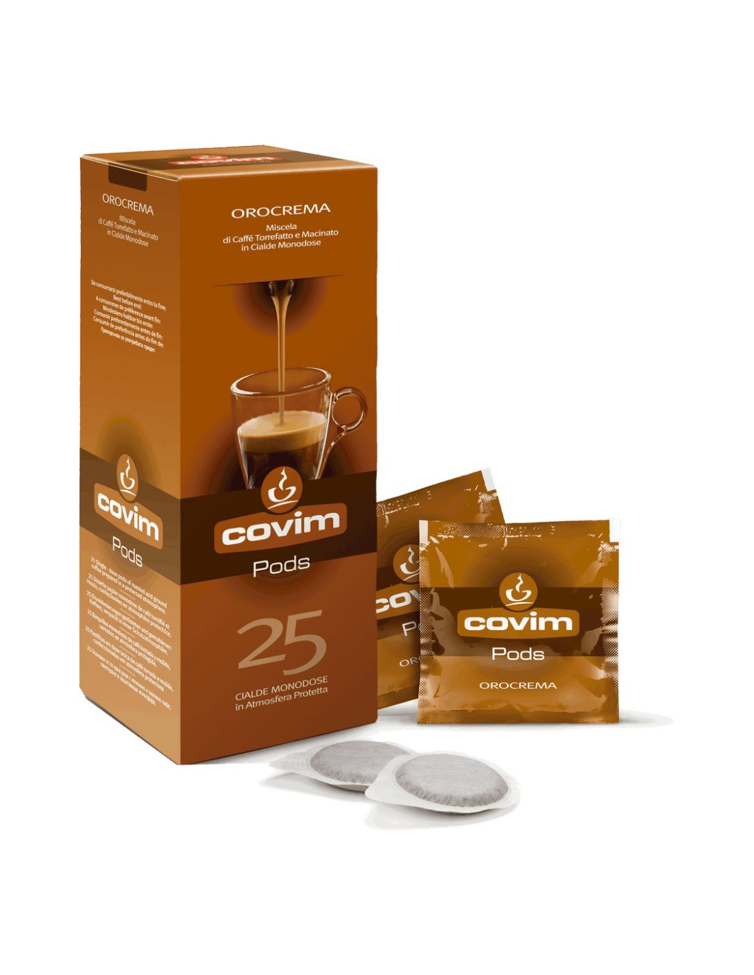 E.S.E. Pods Covim Orocrema, 25 porții - un amestec de arabica și robusta pentru o cremă bogată și note echilibrate de ciocolată.