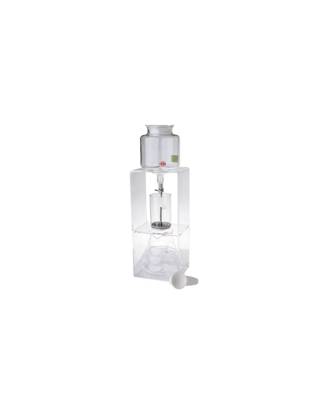 În recipientul superior se află apă rece, care se scurge încet prin filtrul din oțel inoxidabil în vasul de servire inferior. O supapă metalică facilitează reglarea vitezei la care curge apa. Filtrarea poate dura câteva ore, în funcție de setarea supapei și de gustul dumneavoastră. Setarea ideală este un debit de 1 picătură pe secundă. Un recipient plin este filtrat în aproximativ 5 ore. De asemenea, puteți experimenta cu grosimea cafelei pe care o alegeți.