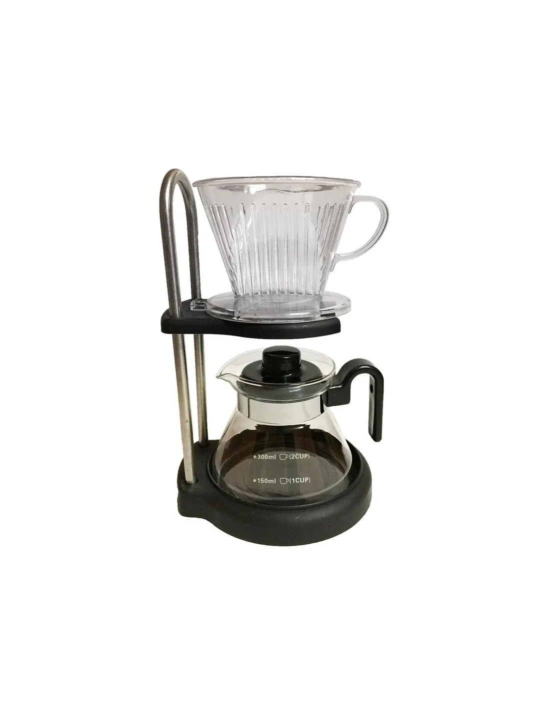 Setul include un picurător din plastic pentru prepararea a 1-3 cești, un ceainic din sticlă cu mâner și capac din plastic cu o capacitate de 350 ml și un suport practic pe care îl puteți folosi direct la prepararea cafelei, în plus, setul pliat nu ocupă mult spațiu și are un aspect estetic plăcut :)