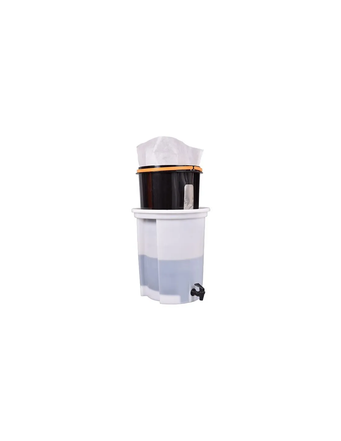 Recipientulare un design de scurgere patentat bazat pe principiul "ridică și răsucește" - de la prepararea cafelei reci pregătite, trebuie doar să ridicați și să rotiți coșul filtrului cu cafeaua măcinată și apoi să îl așezați pe suporturile superioare ale vasului de extracție. Cafeaua rămasă se scurge.