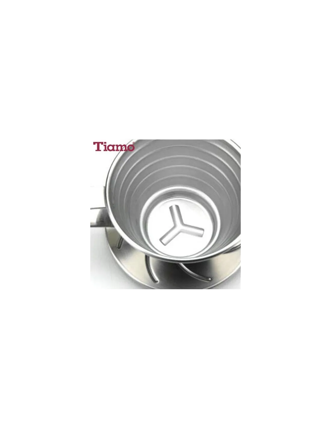 Filtru plat în stil Kalita Wave de la Tiamo, fabricat din oțel inoxidabil robust.