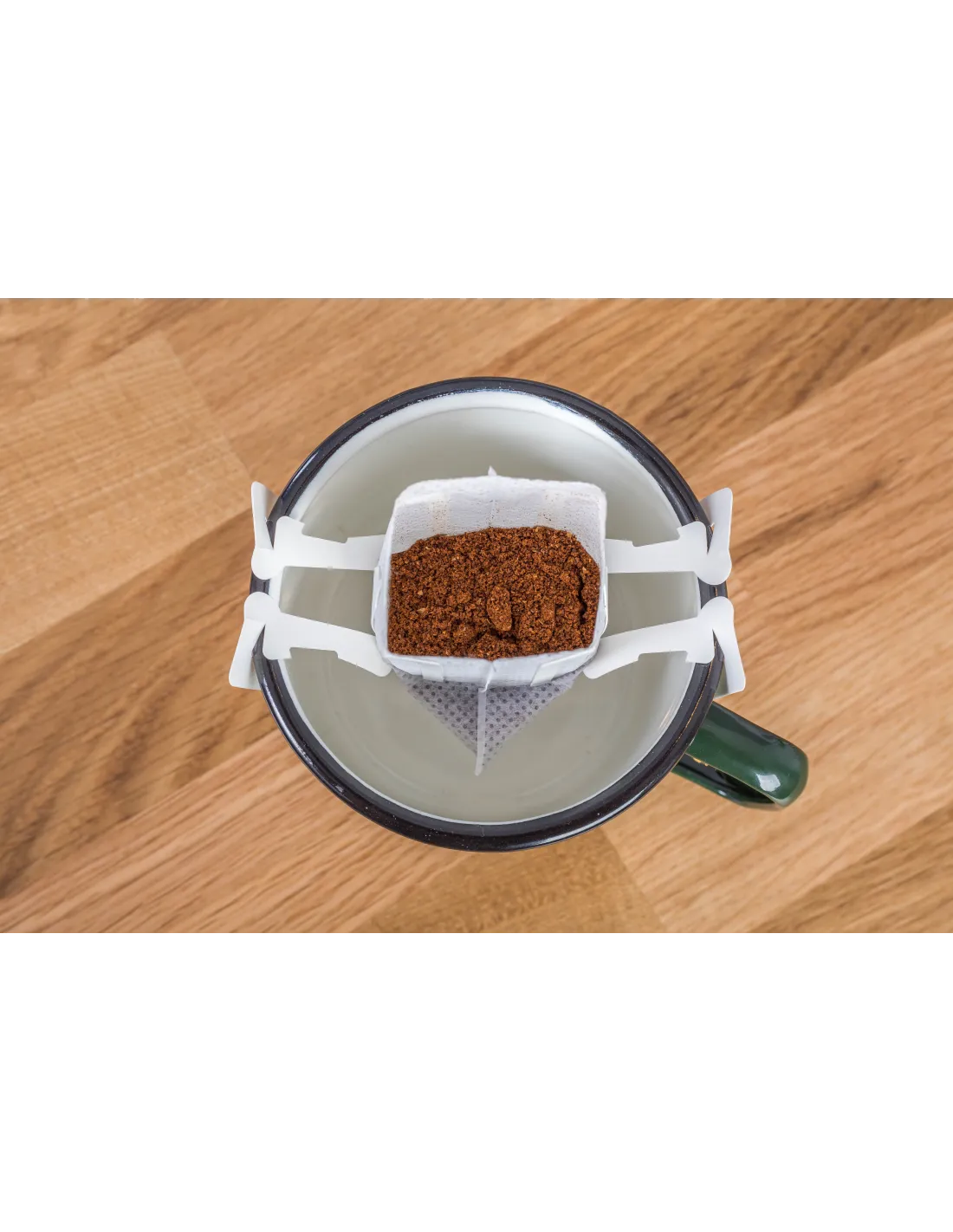 Mergeți cu cortul, într-o drumeție, la un picnic cu prietenii sau vreți să stați undeva pe o drumeție cu vedere la peisaj și să savurați o cafea? Nu trebuie decât să aduceți o cană și să adăugați apă fierbinte. Vă puteți prepara cafeaua cu ușurință, fără niciun aparat, folosind filtrul inclus.