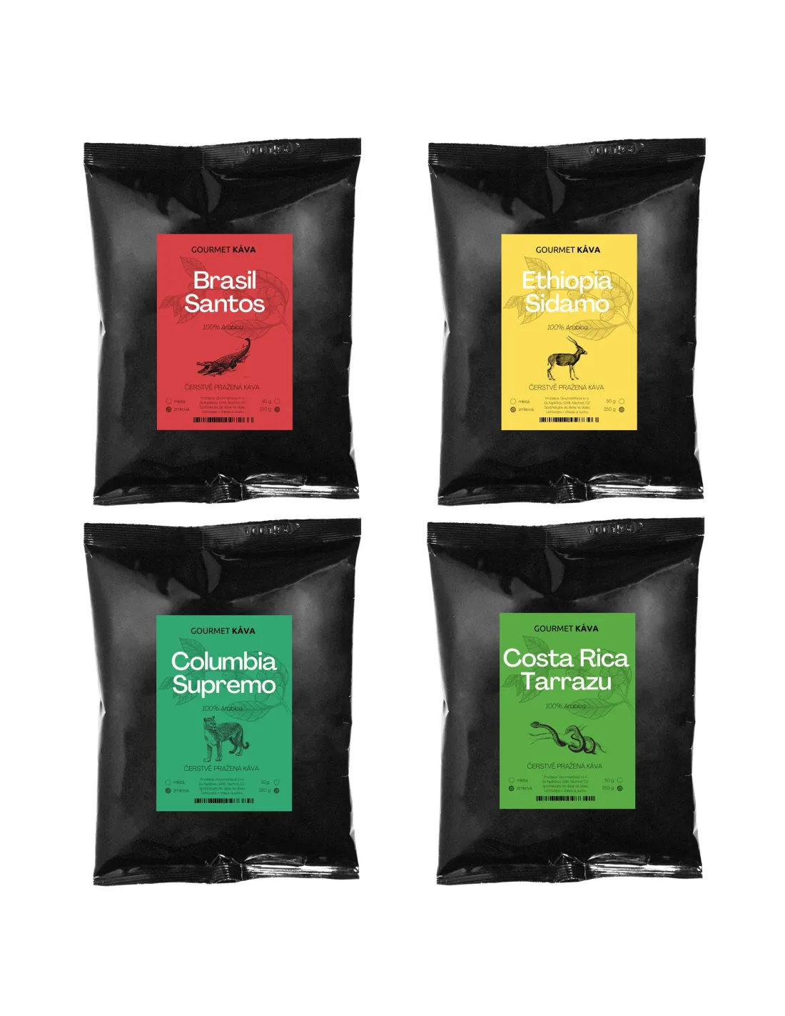 Nu știi ce cafea 100% arabica să alegi? Cumpărați acest amestec de 4 pachete diferite de 250 g fiecare și obțineți o reducere de 10% din preț! În total 1 kg de cafea prăjită .