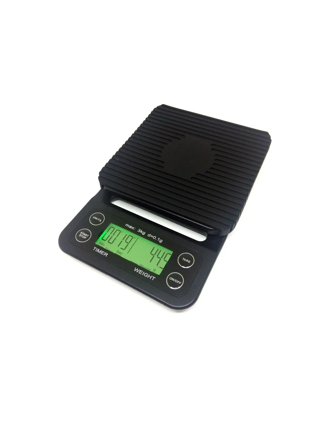 Cântar digital pentru barista Kaffia Gourmet cu cronometru integrat și precizie de cântărire de până la 0,1 g.