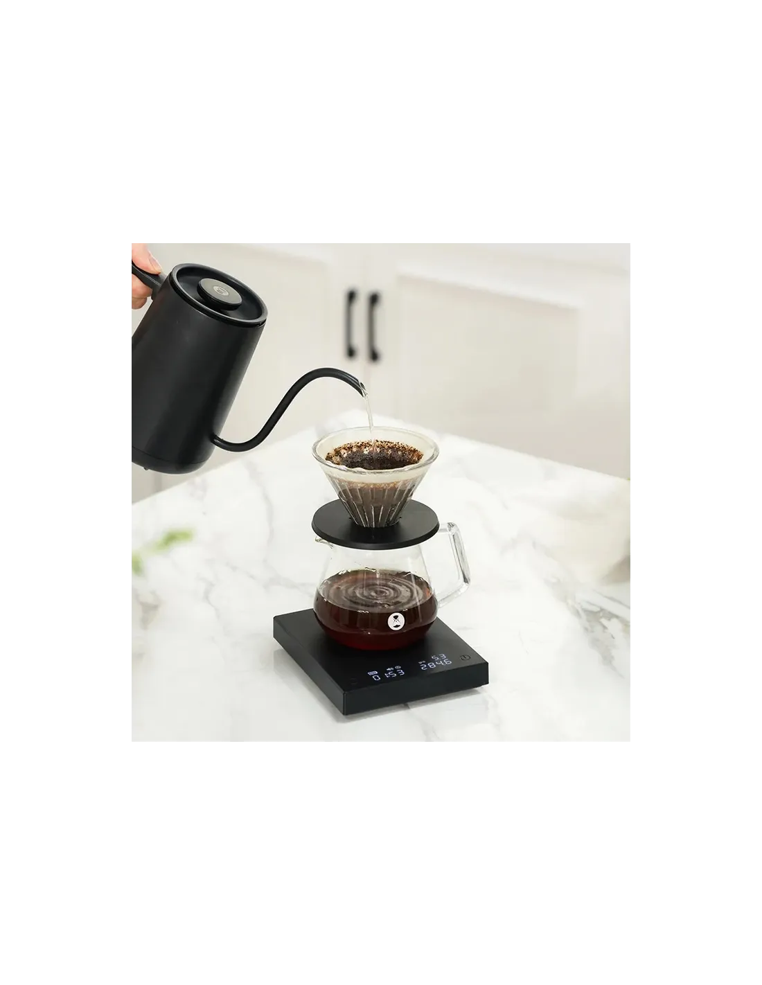 Noul model al cântarului digital elegant Timemore Mirror Basic PRO de culoare neagră, cu caracteristici minimaliste și design elegant, este asistentul ideal pentru prepararea espresso acasă și la nivel profesional sau pentru metodele pour-over, cum ar fi Chemex, dripper sau AeroPress.