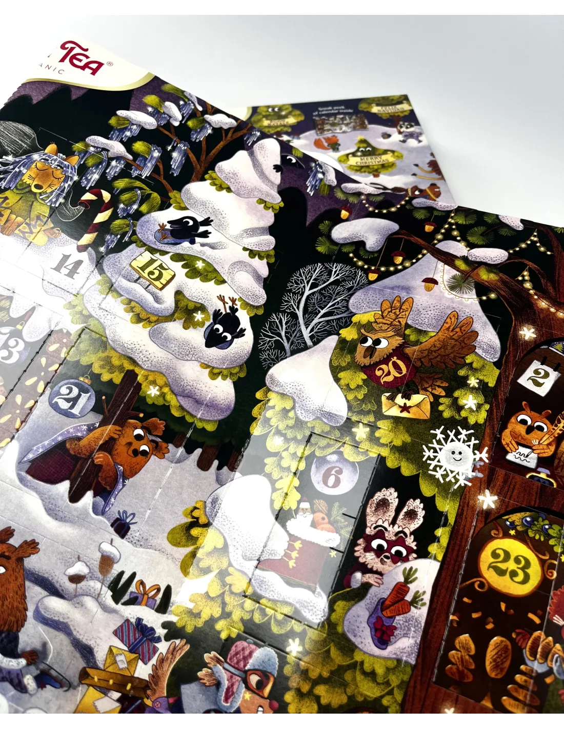 Acest calendar Advent cu design de Crăciun oferă 24 de plicuri cu diferite amestecuri de ceai YOGI TEA®.