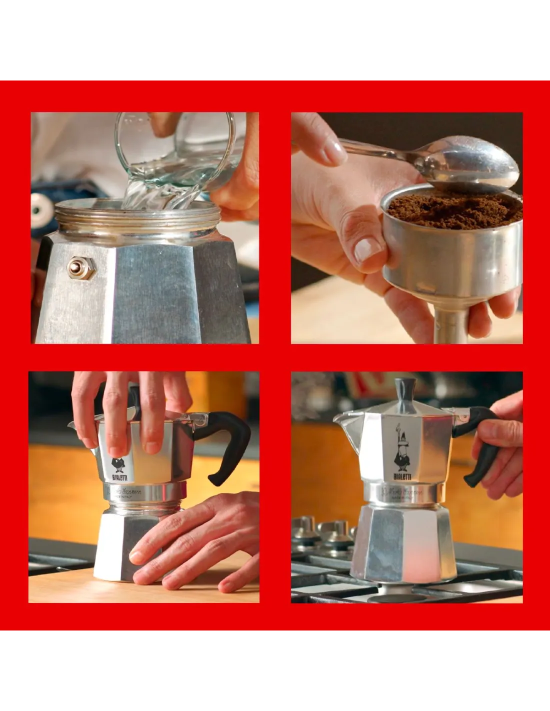 Legendara oală moka Bialetti Moka Express de la compania italiană Bialetti pentru prepararea tradițională a unei cafele mai puternice. Potrivit pentru 4 căni, adică aproximativ 190 ml.