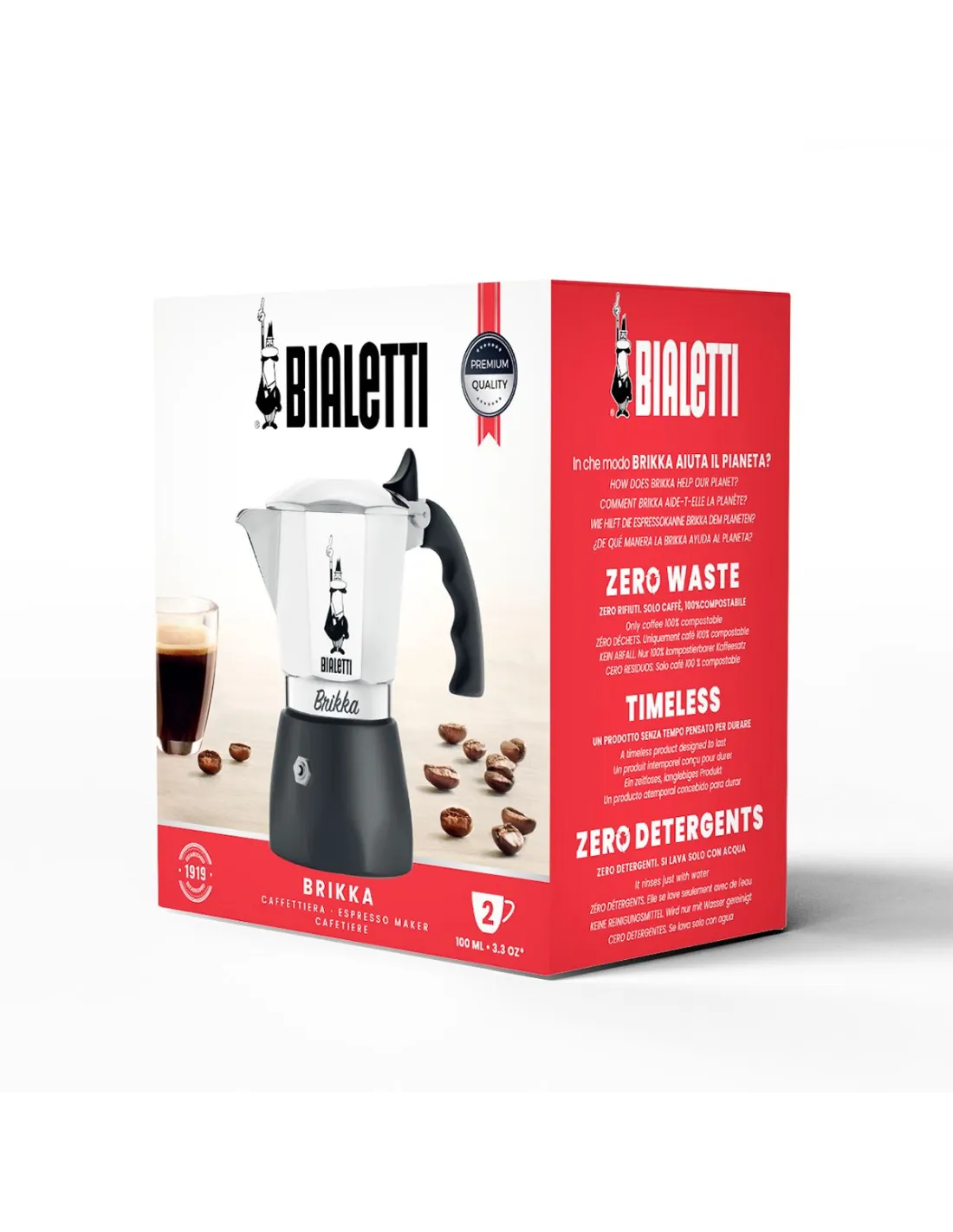 Bialetti Brikka este fabricat din aluminiu lustruit de calitate alimentară, iar mânerul confortabil este din plastic. Articolele de gătit din aluminiu tind să fie nepopulare, dar nu este cazul aici. Interiorul aparatului de cafea se va acoperi cu o patină după un timp de utilizare și va absorbi aroma cafelei. Acest gust și simplitatea întregii unități sunt cele care fac ca bialettes să fie atât de populare în întreaga lume.