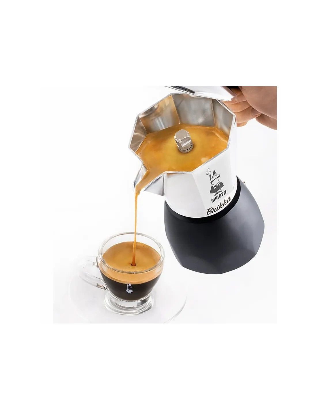 Bialetti Brikka este singura cafetieră moka care este îmbunătățită față de celelalte printr-o supapă patentată care face ca ibricul moka să fie funcționează mai mult ca o mașină de espresso.