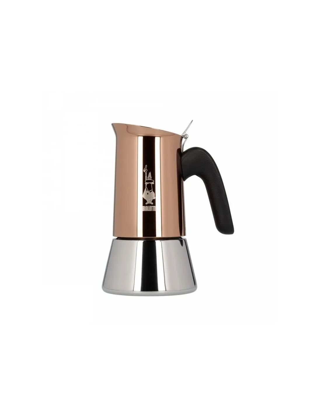 Oală de lux de lux pentru moca Bialetti Venus Copper din inox de la compania italiană Bialetti pentru prepararea tradițională a 2 cești de cafea mai tare (aproximativ 85 ml). Nu este potrivit pentru inducție!