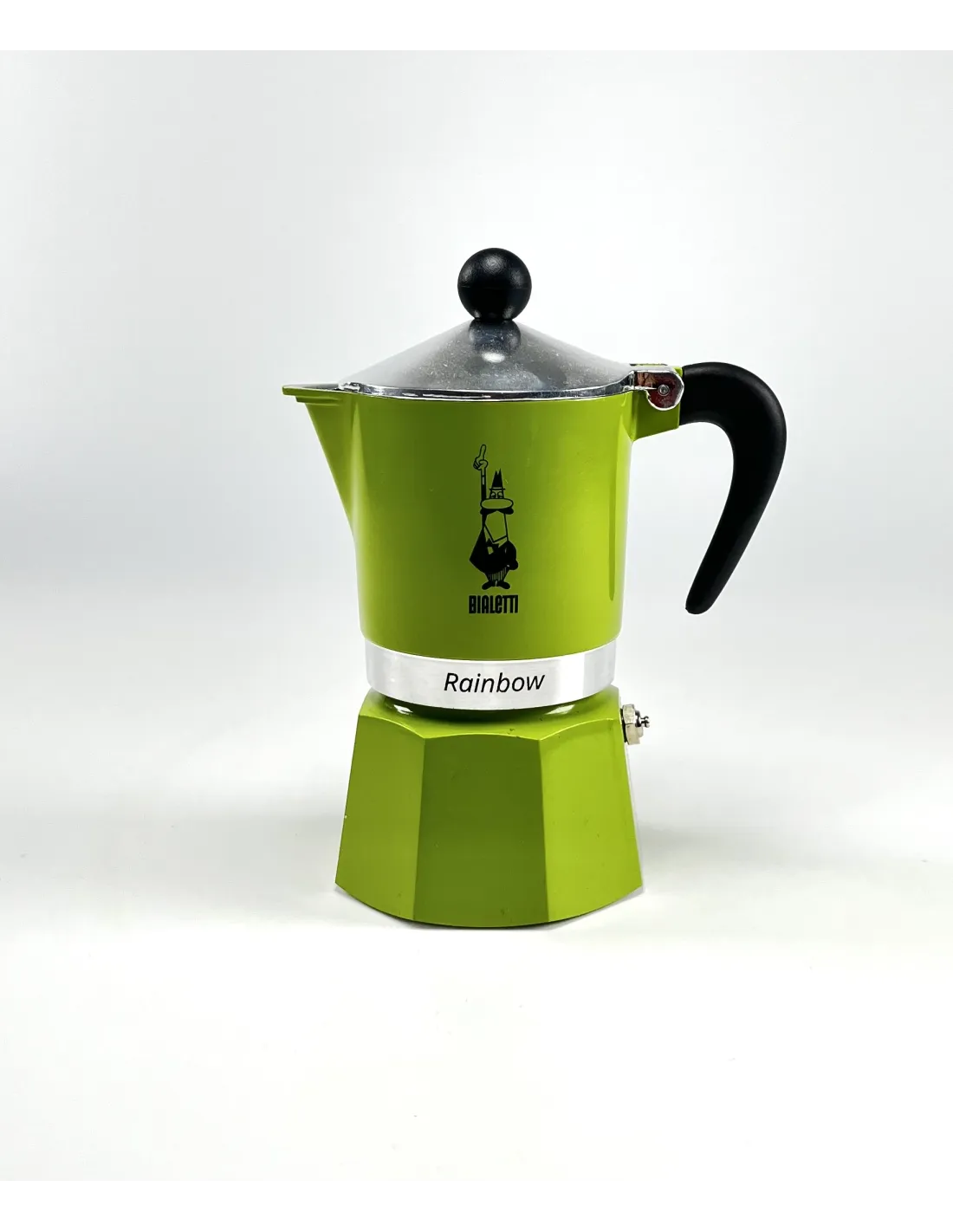 Oală moka elegantă din aluminiu Bialetti Rainbow de la compania italiană Bialetti pentru prepararea tradițională a unei cafele mai puternice. Potrivit pentru 3 cești. Capacitate: aprox. 130 ml.