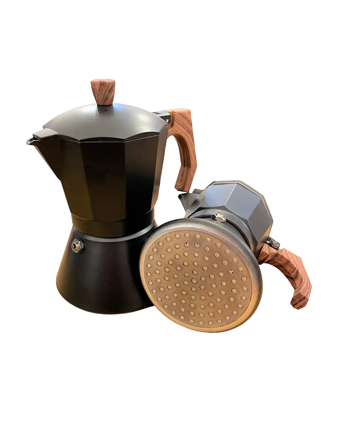 Ceainic moka din aluminiu Kaffia pentru prepararea a 3 cești de cafea moca. O metodă de preparare simplă, apropiată de cea a espresso-ului, la o fracțiune din cost. Volum: aprox. 150 ml. Nu este potrivit pentru plite cu inducție.