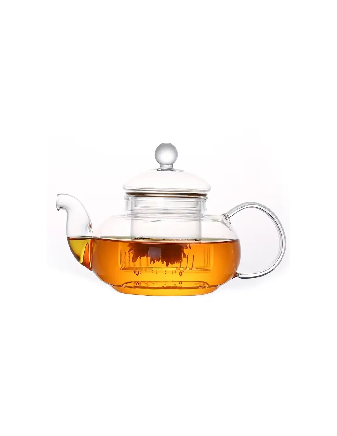 Ceainicul din sticlă de 240 ml este ideal pentru prepararea și servirea unor cantități mai mici de ceai. Este echipat cu o strecurătoare care asigură înmuierea perfectă a frunzelor de ceai și turnarea ușoară, fără reziduuri în băutură. Datorită designului transparent, puteți monitoriza procesul de înmuiere și vă puteți bucura de culoarea ceaiului. Ceainicul nu este doar practic, ci și un accesoriu elegant care vă va face ritualul ceaiului mai plăcut. Alegerea perfectă pentru persoanele fizice sau pentru servirea ceaiului cu stil într-o companie mai mică.