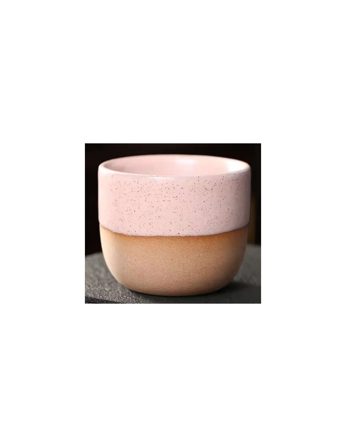 Ceașcă elegantă din ceramică fără mânere, cu o glazură delicată presărată. Se potrivește confortabil în mână și este ideală pentru espresso, lungo sau o porție mai mică de ceai.