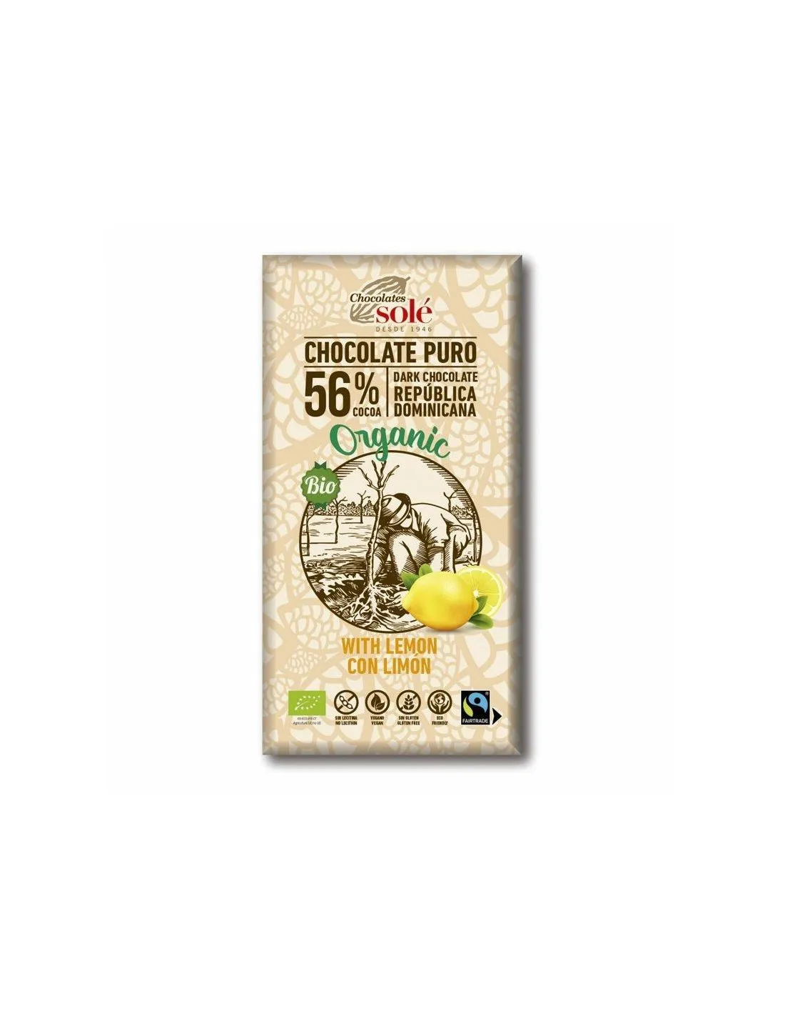 Chocolates Solé - 56% bio ciocolată cu lămâie. Note delicate de lămâie în ciocolată neagră.