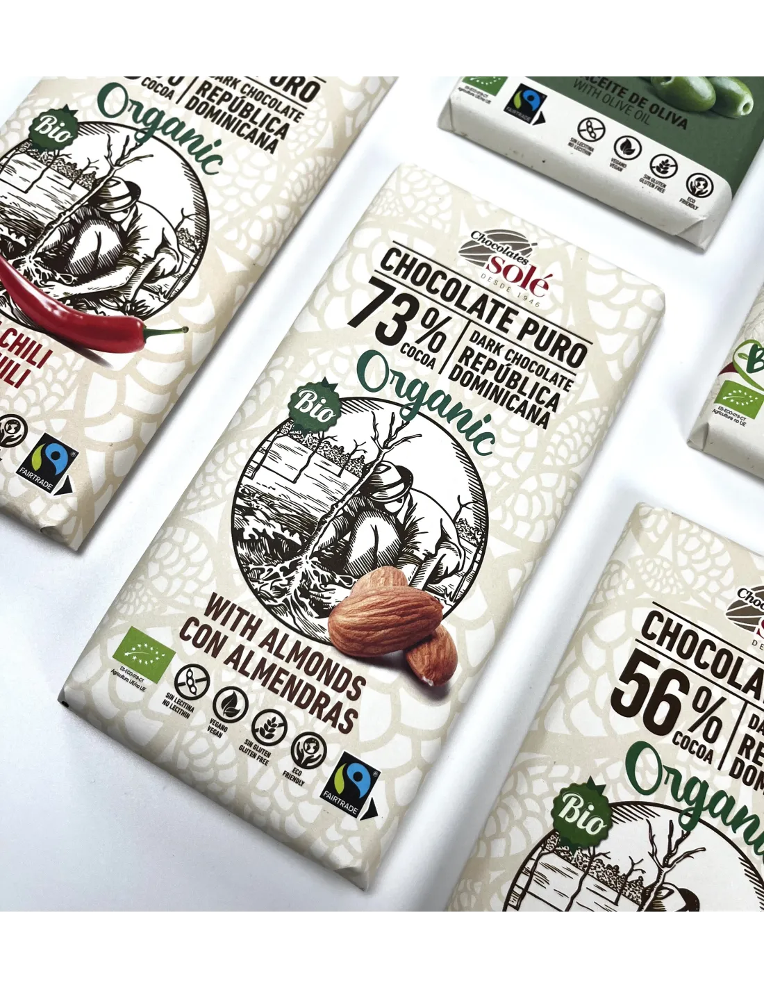 Chocolates Solé - 73% ciocolată neagră organică cu migdale 150g