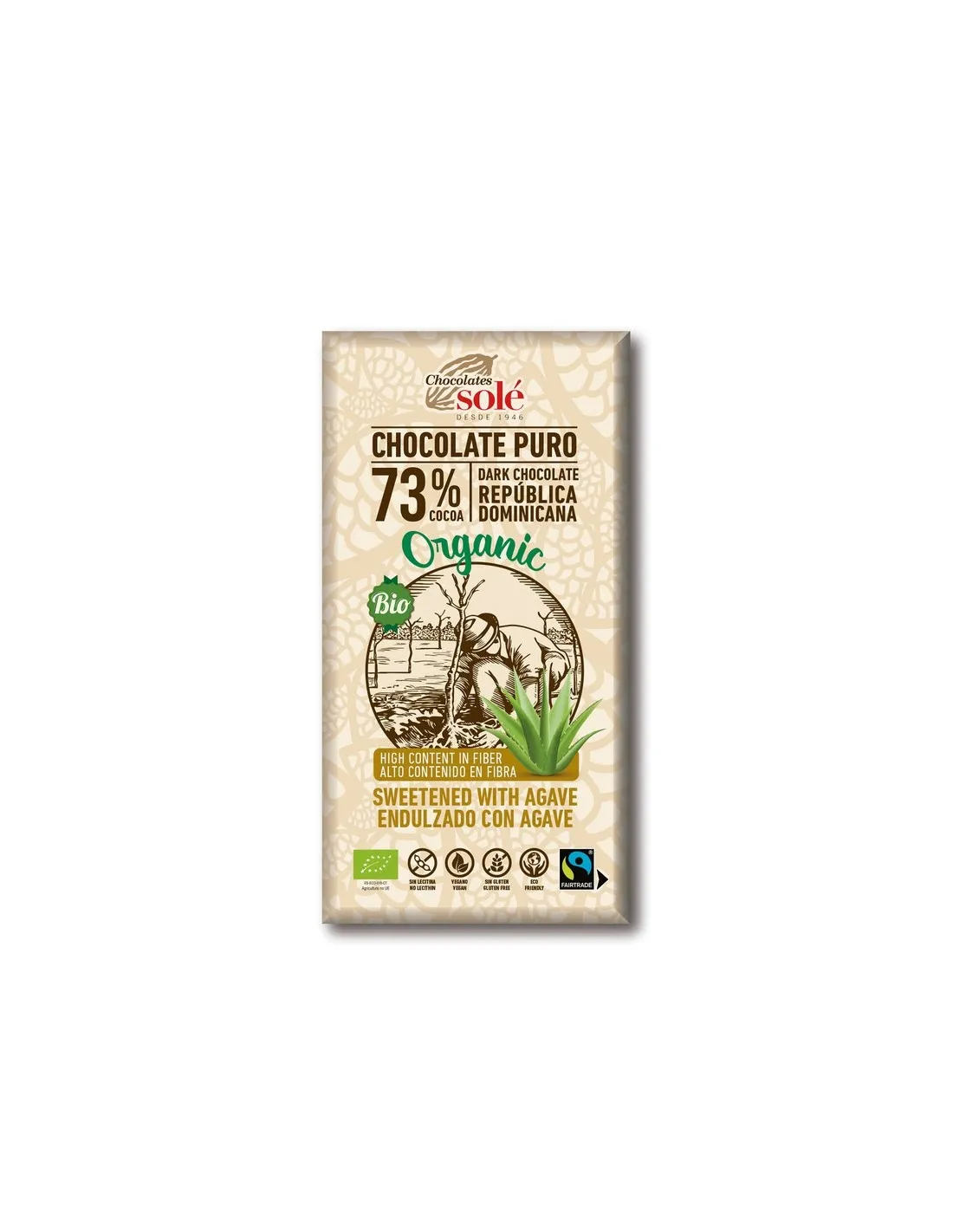 Chocolates Solé - 73% ciocolată organică fără zahăr cu agave, fără zahăr