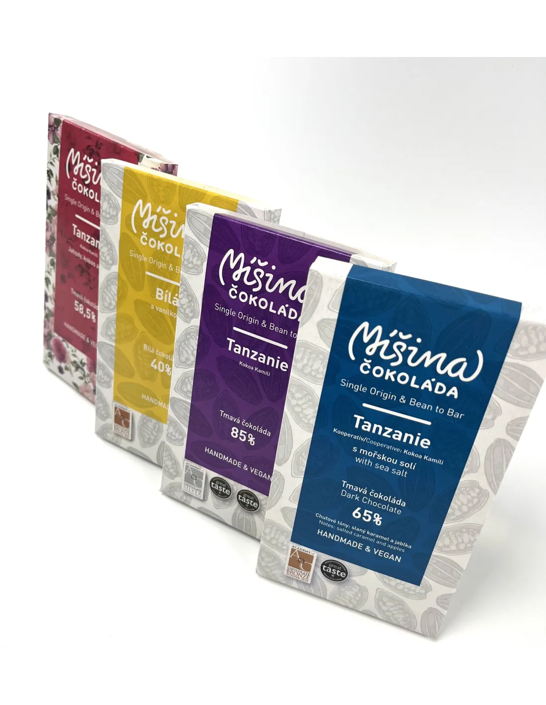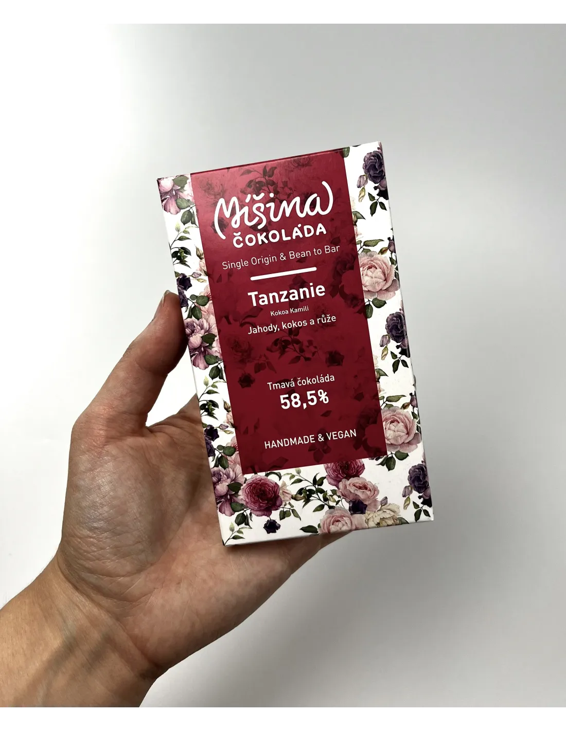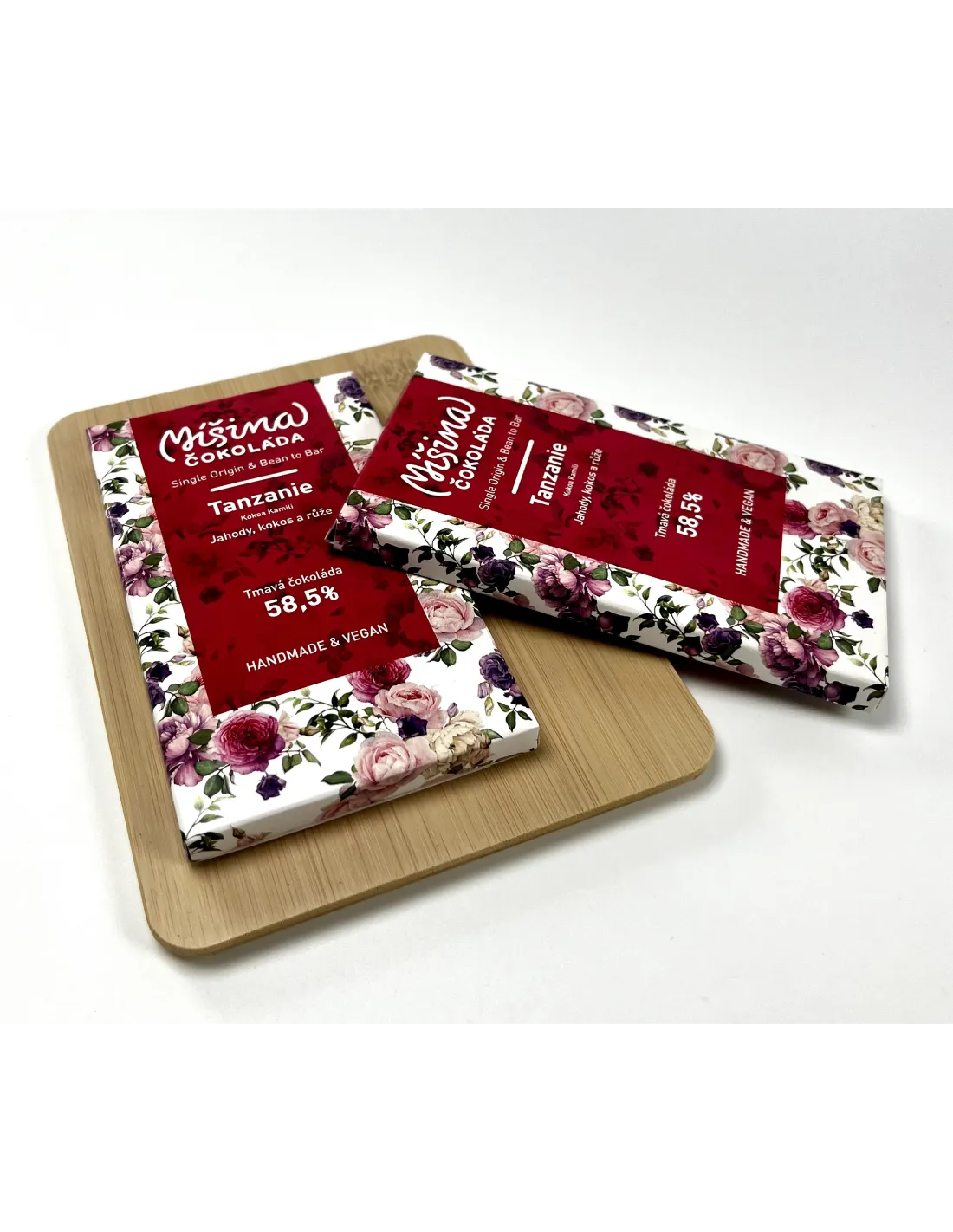 Ciocolată Ciocolată mixtă, Tanzania Căpșuni, nucă de cocos, trandafir 58,5%