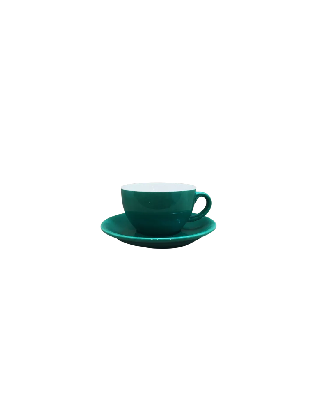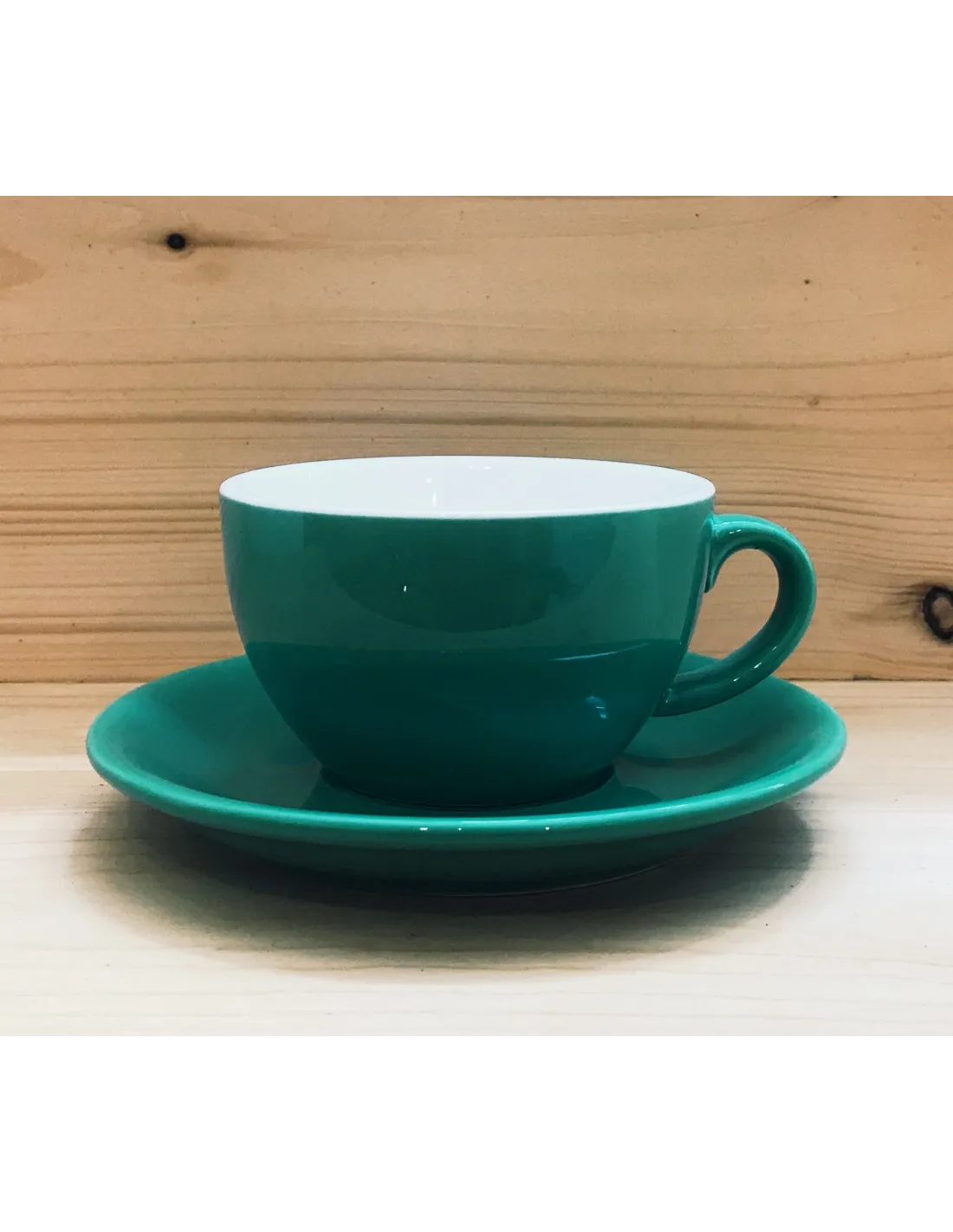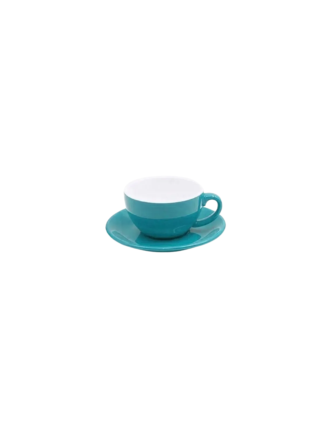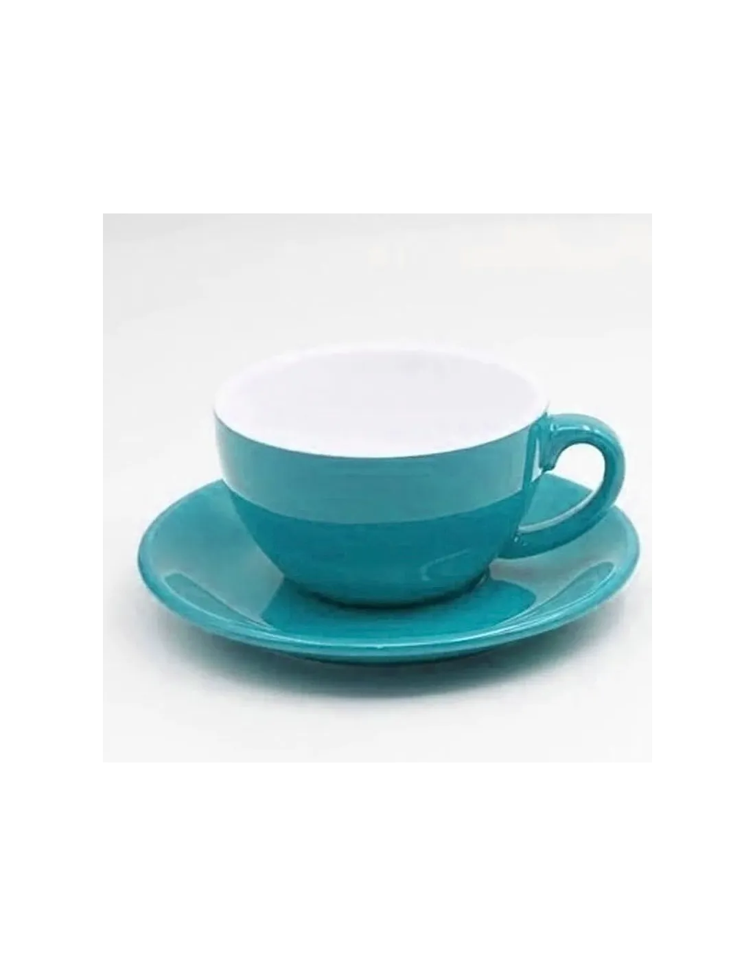 Cana cappuccino din portelan cu volum de 200 ml. Include și o farfurie . Culoare: turcoaz .