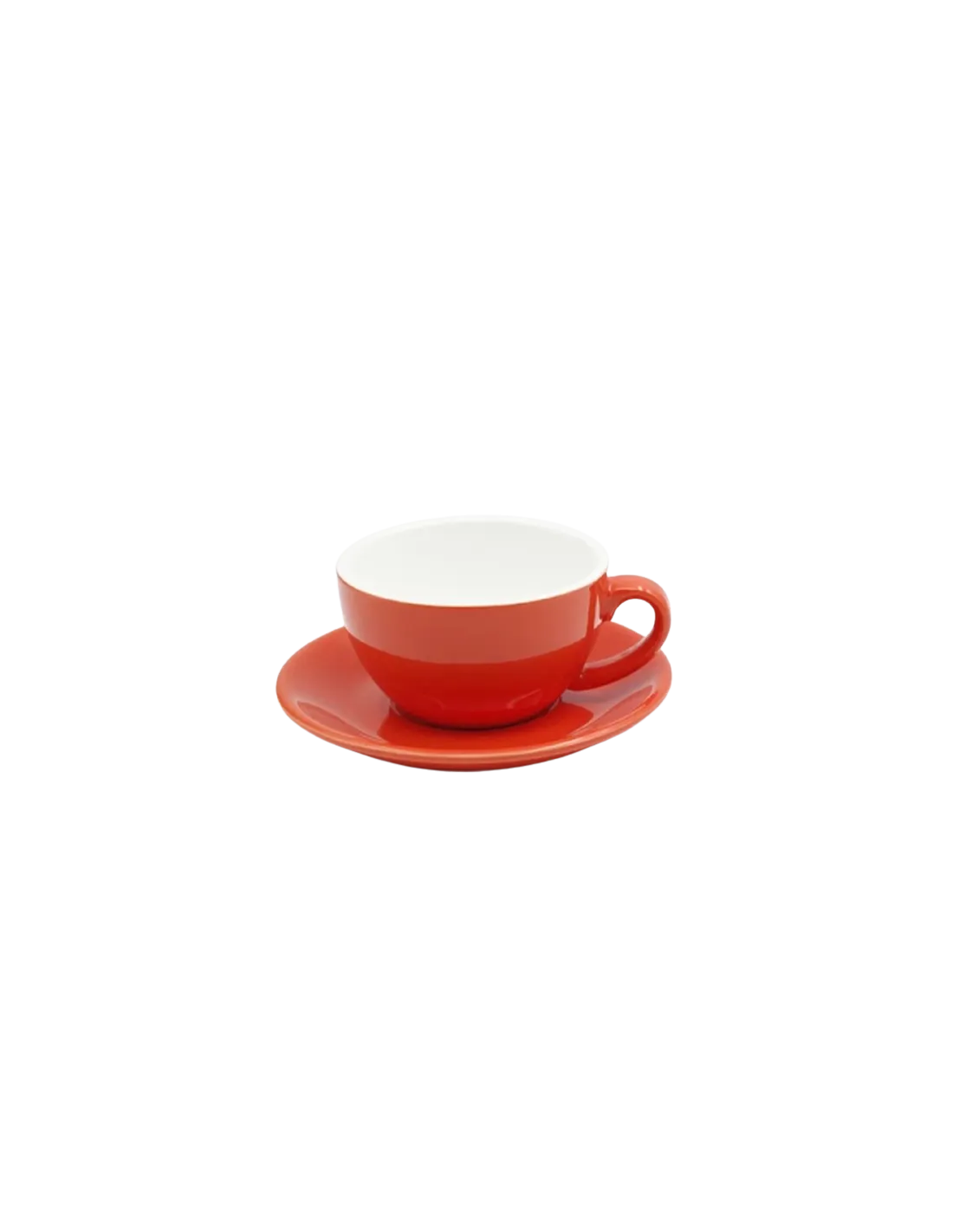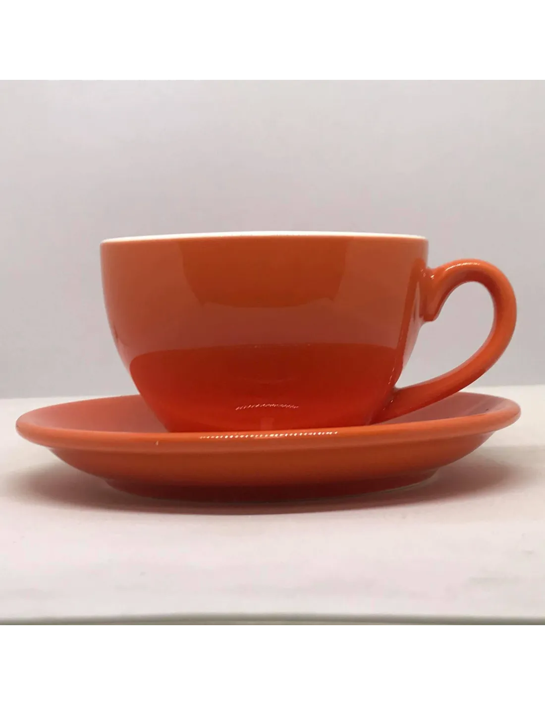 Cana cappuccino din portelan cu volum de 200 ml . Include și o farfurie . Culoare: portocaliu .
