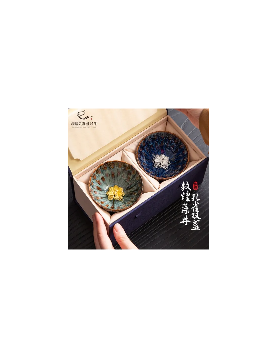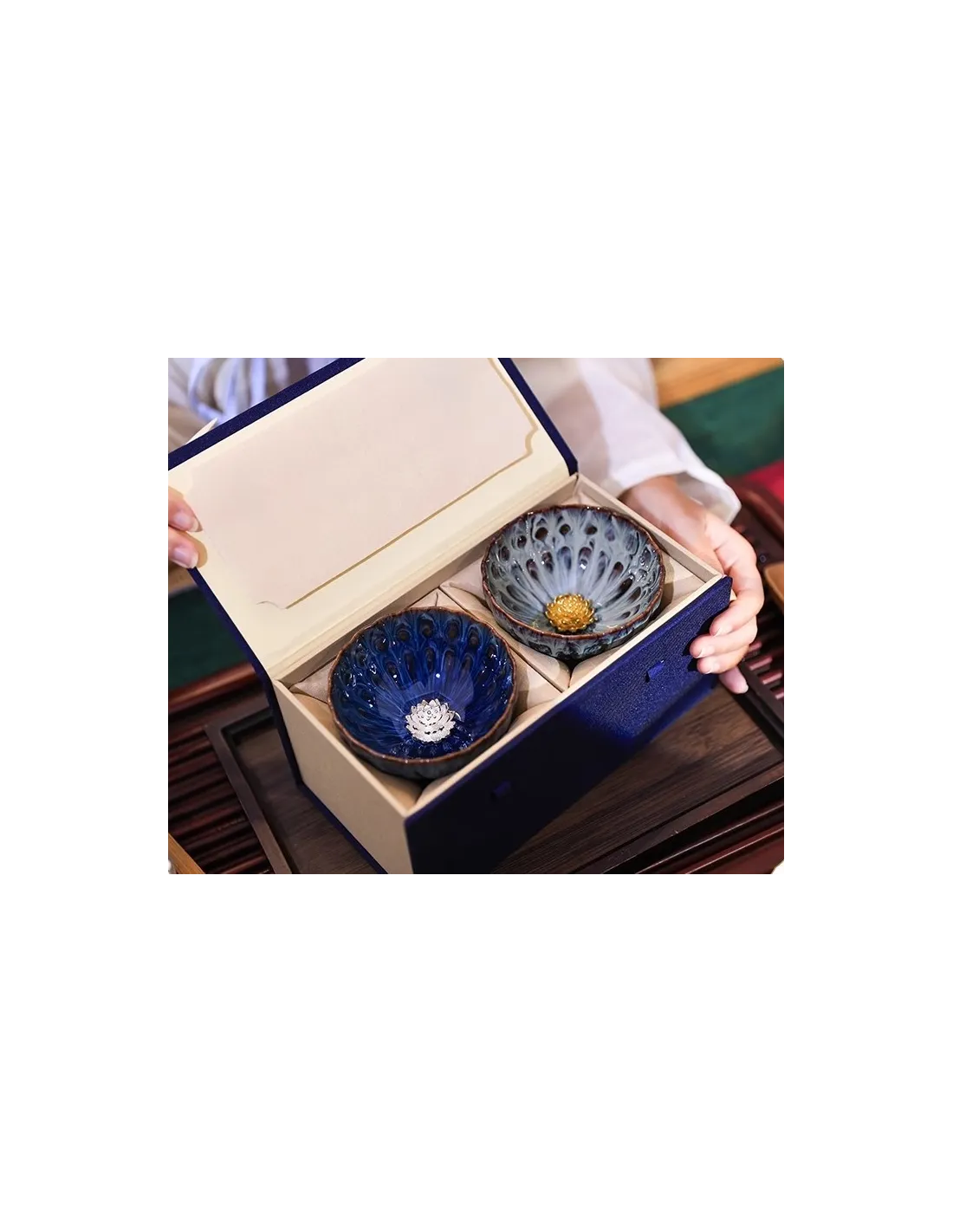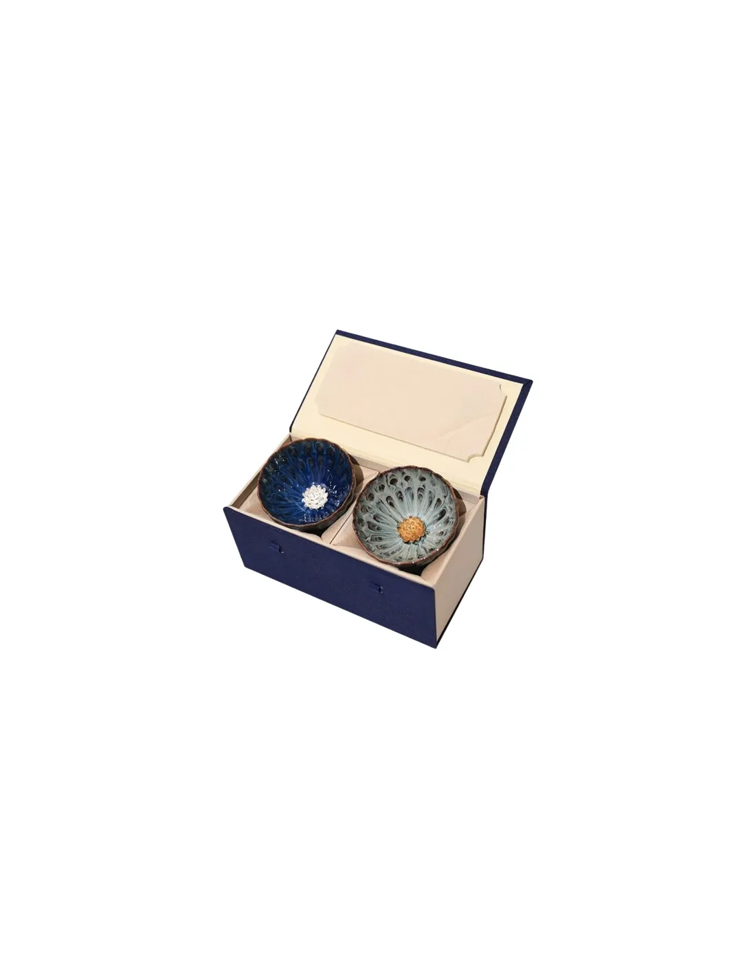 Set elegant de două cești Kaffia Blossom în stil chinezesc, ambalate într-o cutie de lux pentru cadou.