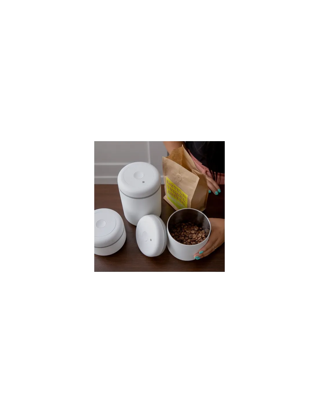 Recipientul sub vid Fellow Atmos este ideal pentru depozitarea cafelei, deoarece împiedică pătrunderea aerului, contribuind la păstrarea prospețimii și aromei acesteia pentru mai mult timp. Dispune de o pompă integrată care îmbunătățește această funcție.