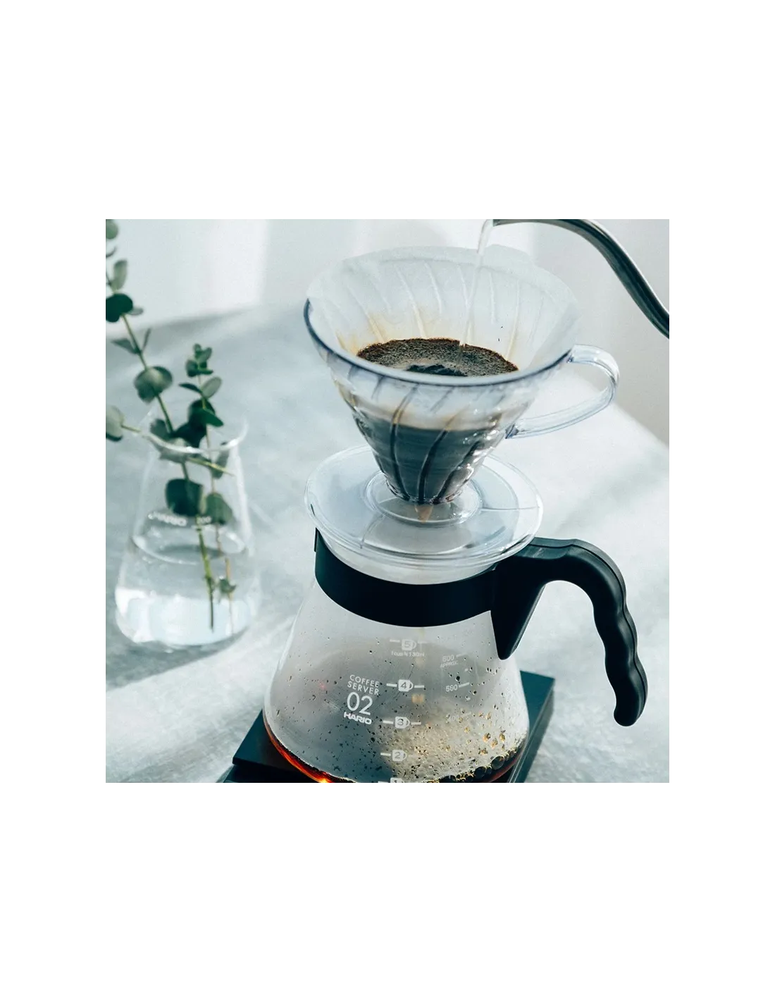 Setul Hario V60 Pour Over Craft (VCND-02B-EX) conține tot ce ai nevoie pentru a prepara cafea filtrată proaspătă, totul într-un singur loc.