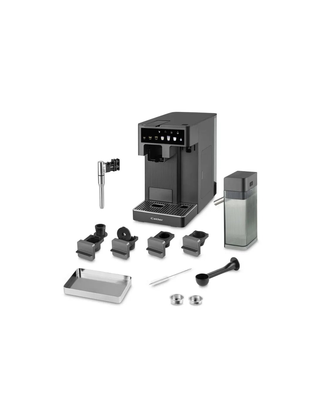 Aparatul espresso Catler ES 750 G Renzo de culoare gri vă permite să preparați cafea din capsule și cafea măcinată. Funcționarea ușoară și designul modern garantează o utilizare confortabilă.