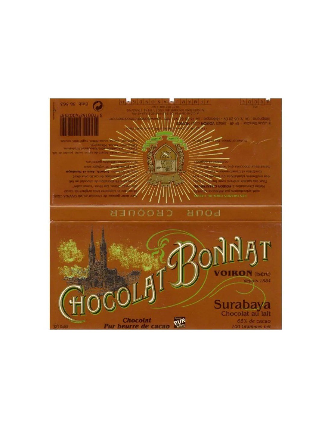 Ciocolată cu lapte cu procent ridicat - 65% - preparată din boabe de cacao cultivate în regiunea Surabaya, în estul insulei Java din Indonezia. Consistența ciocolatei este netedă, iar gustul este surprinzător de bogat și intens, cu note fructate de smochine și curmale.