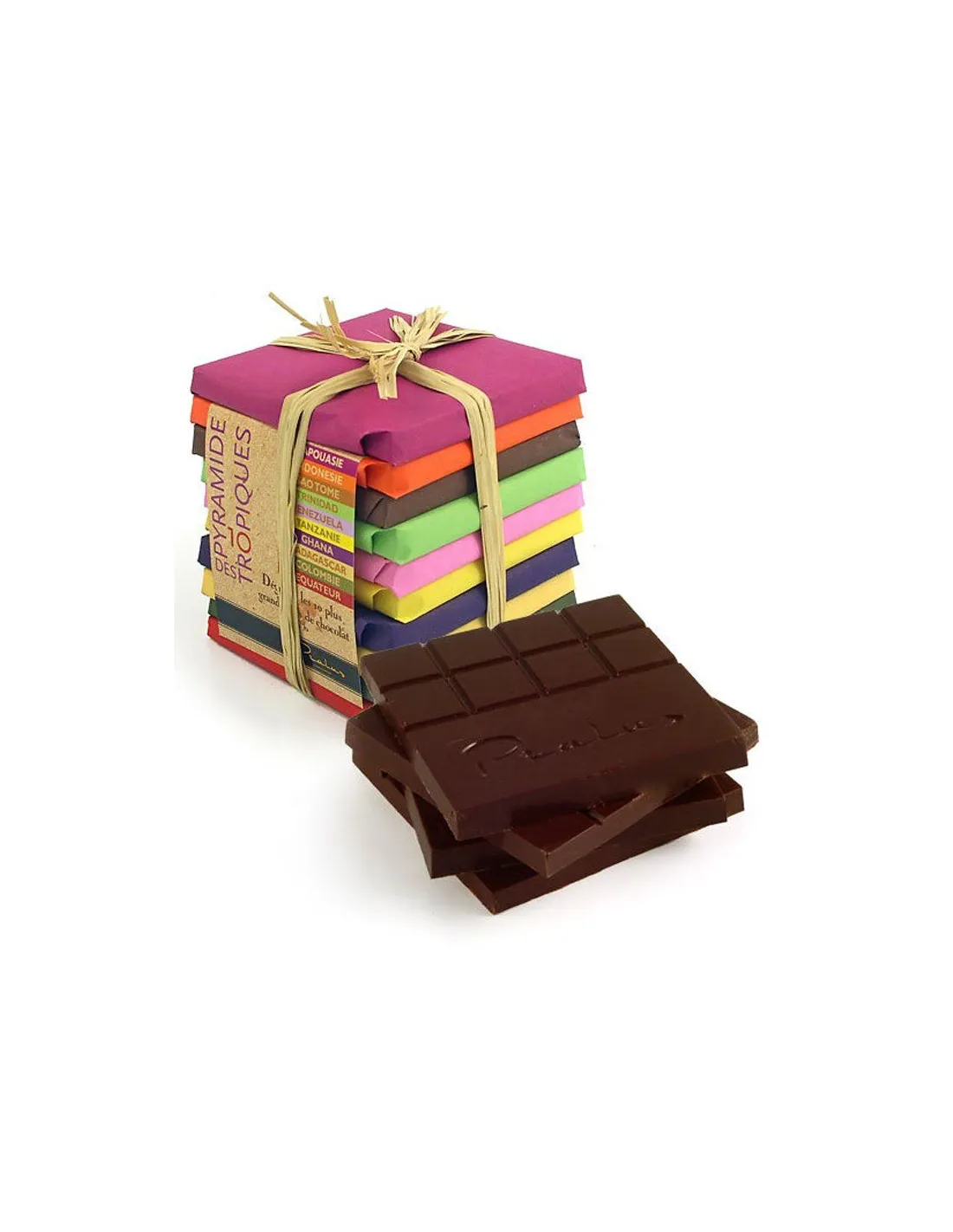 Faceți o călătorie cu ciocolată în jurul lumii. Setul de degustare conține 10 tipuri de ciocolată de origine unică 75% Francois Pralus. În acest set de degustare vă veți bucura de diferențele dintre diferitele soiuri de boabe de cacao (Criollo, Trinitario și Forastero) și veți compara gustul ciocolatei din diferite regiuni ale lumii.
