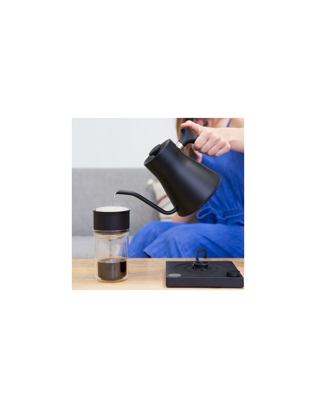 - Gura de scurgere îngustă și lungă permite un control deplin atunci când se toarnă. Pregătirea cafelei cu picurător, chemex sau aeropress va fi mai consistentă și mai plăcută