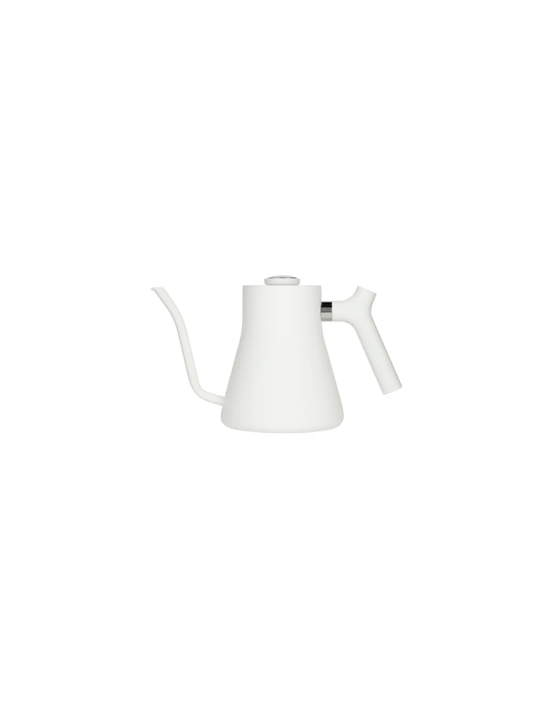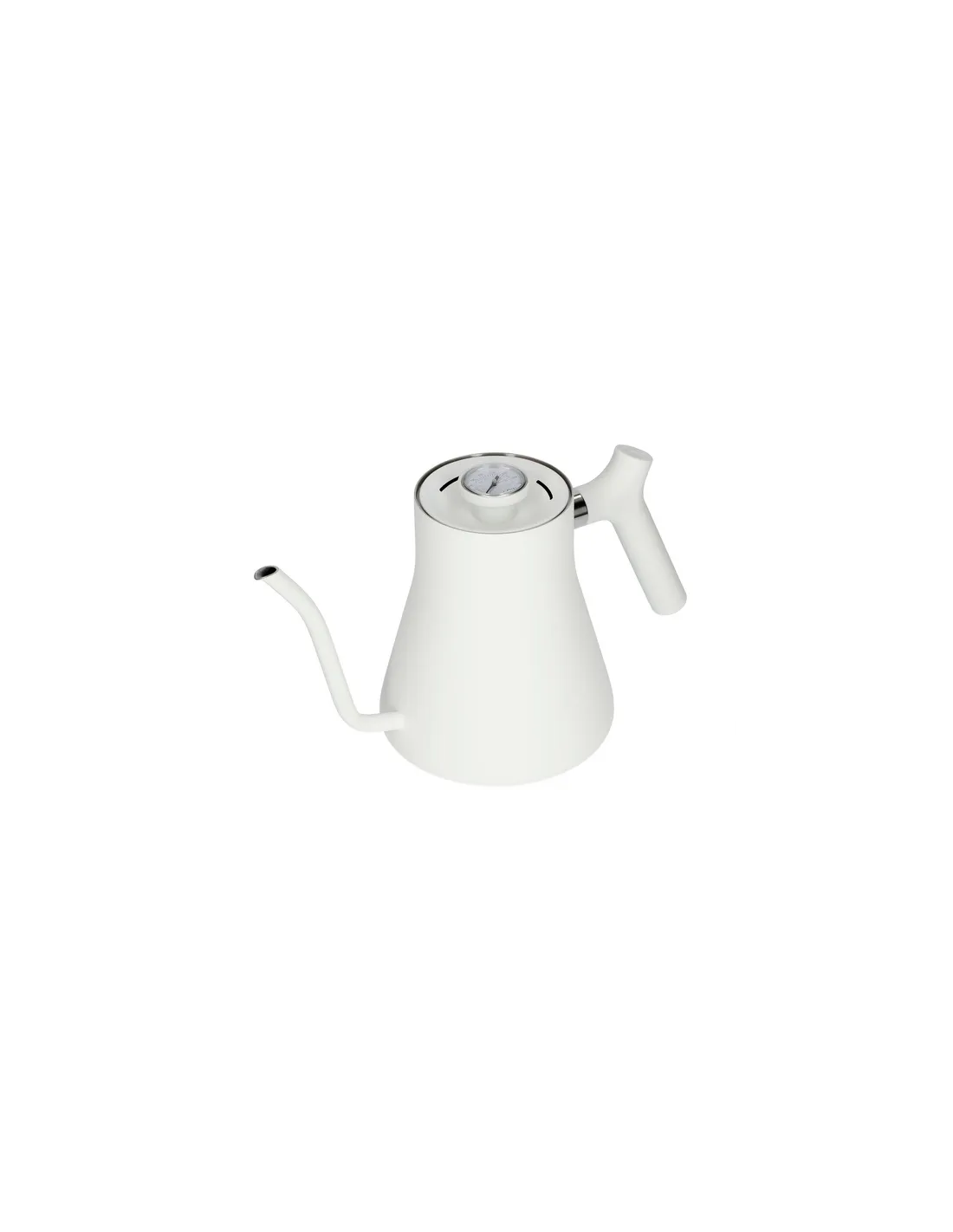Ulciorul de apă Feloow Stagg de 1 l cutermometru integrat și gura de scurgere special concepută pentru o turnare precisă în preparatele alternative de cafea. Culoare: alb.