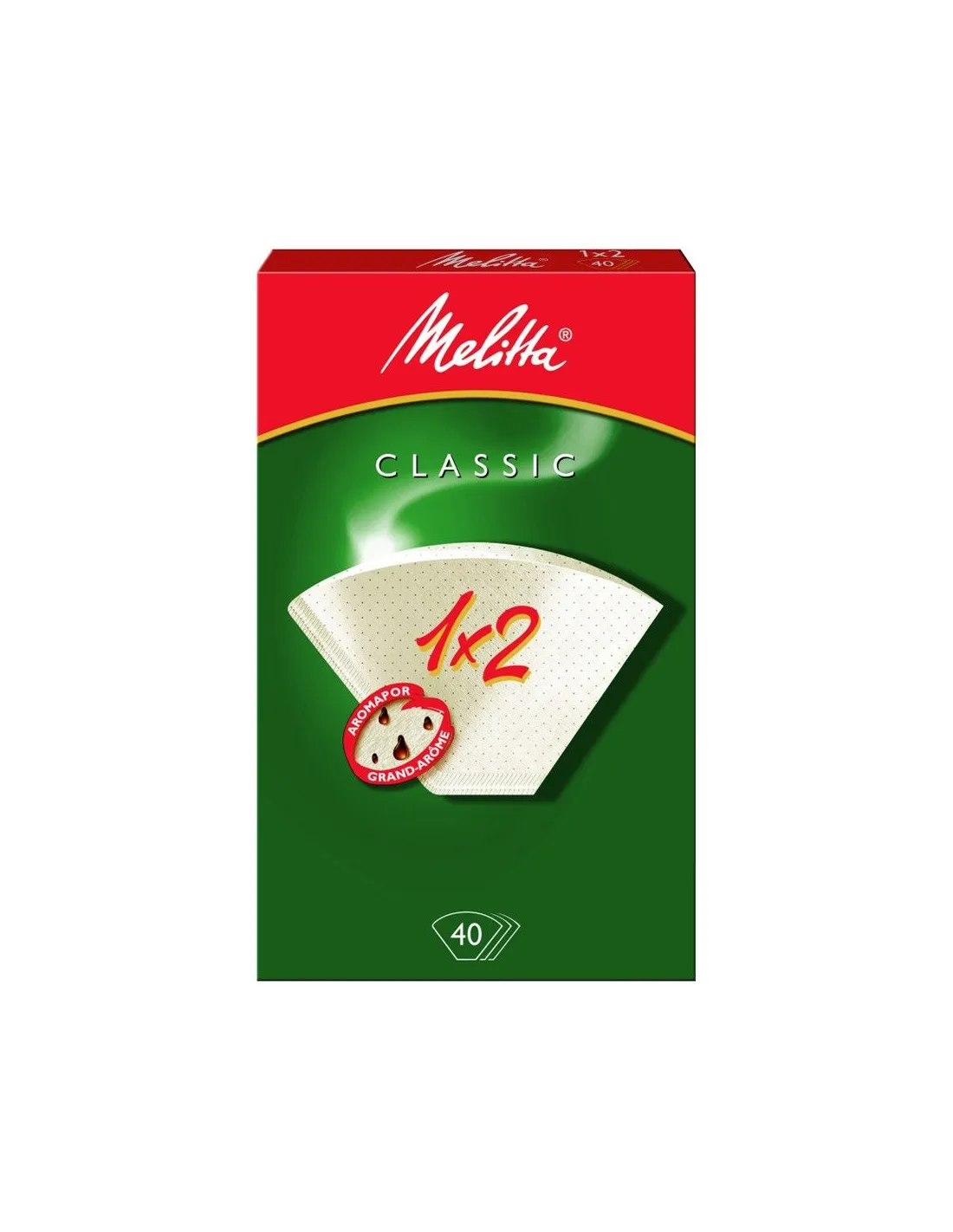 Filtrele de hârtie Melitta® Original în format 1x2, care dezvoltă gustul optim al cafelei filtrate. Conținutul pachetului: 40pcs