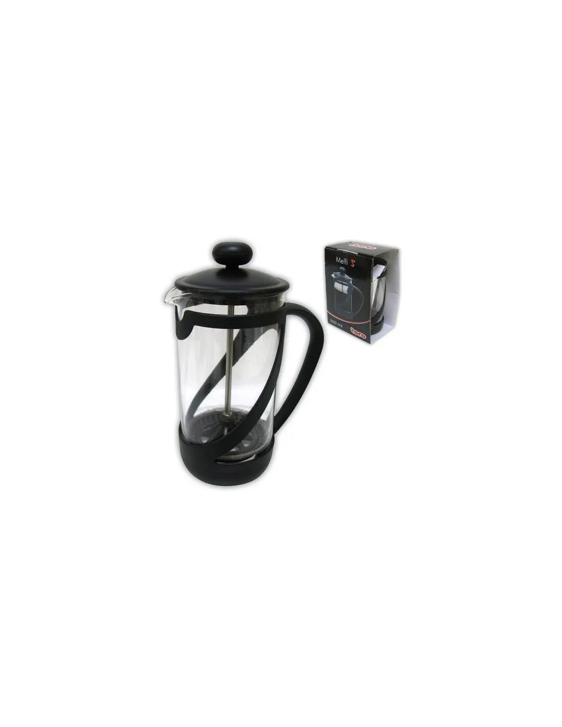 Aparatul elegant de cafea cu presă franceză din plastic, cu un corp negru și o capacitate de 350 ml, este ajutorul perfect pentru prepararea unei cafele proaspete de calitate. Îl veți aprecia, de asemenea, atunci când preparați ceaiuri sau ierburi libere. Corpul este fabricat din sticlă transparentă, iar pistonul este fabricat din oțel inoxidabil de înaltă calitate. Pentru mai multe informații despre prepararea cafelei prin această metodă, consultați secțiunea noastră Pregătirea cafelei - Presă franceză.