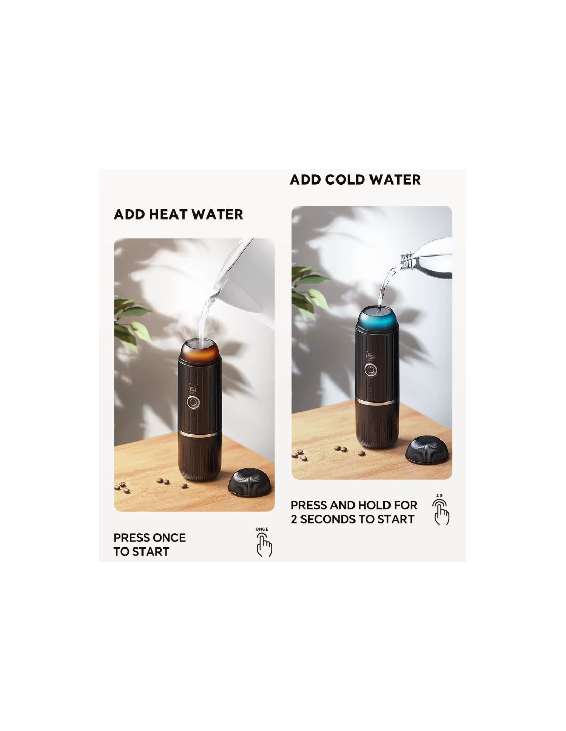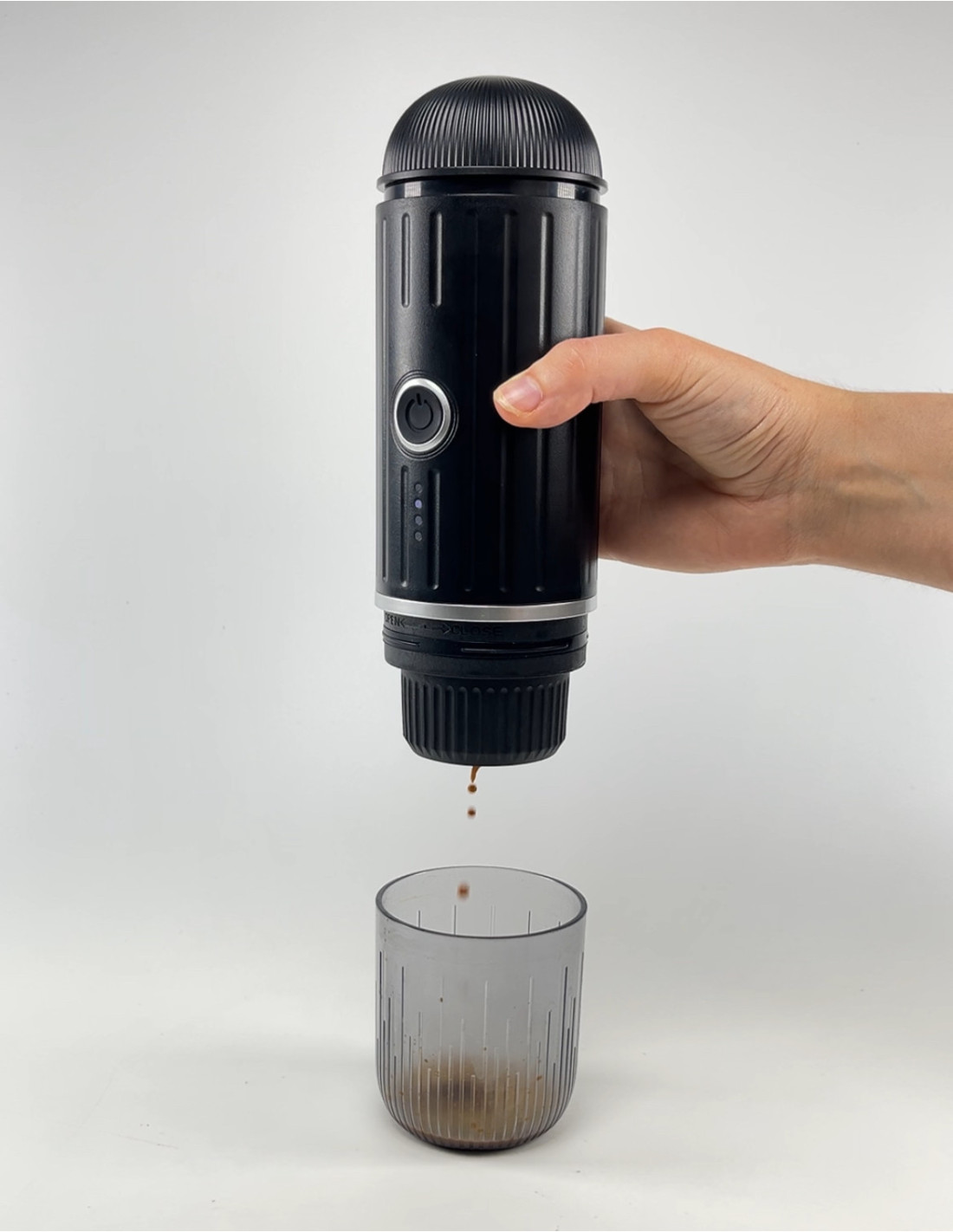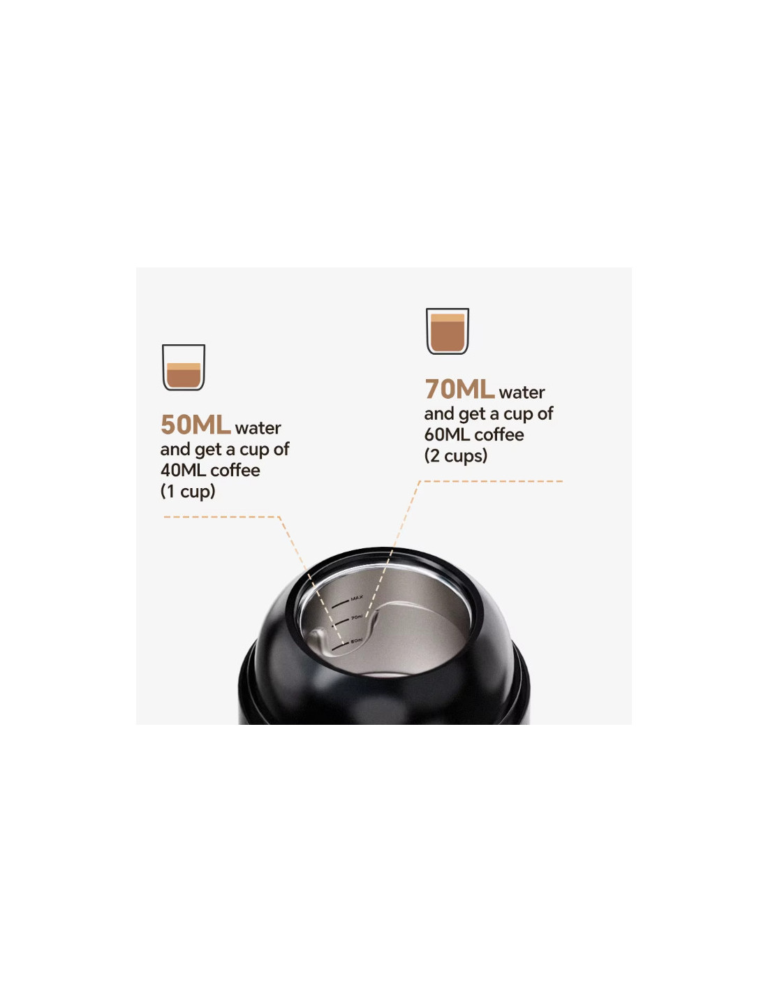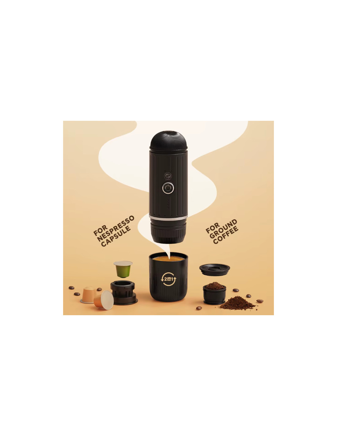 Aparat de cafea de călătorie pentru capsule și cafea măcinată cu o baterie de 7500 mAh care încălzește apa chiar și fără priză. Espresso oricând, oriunde.