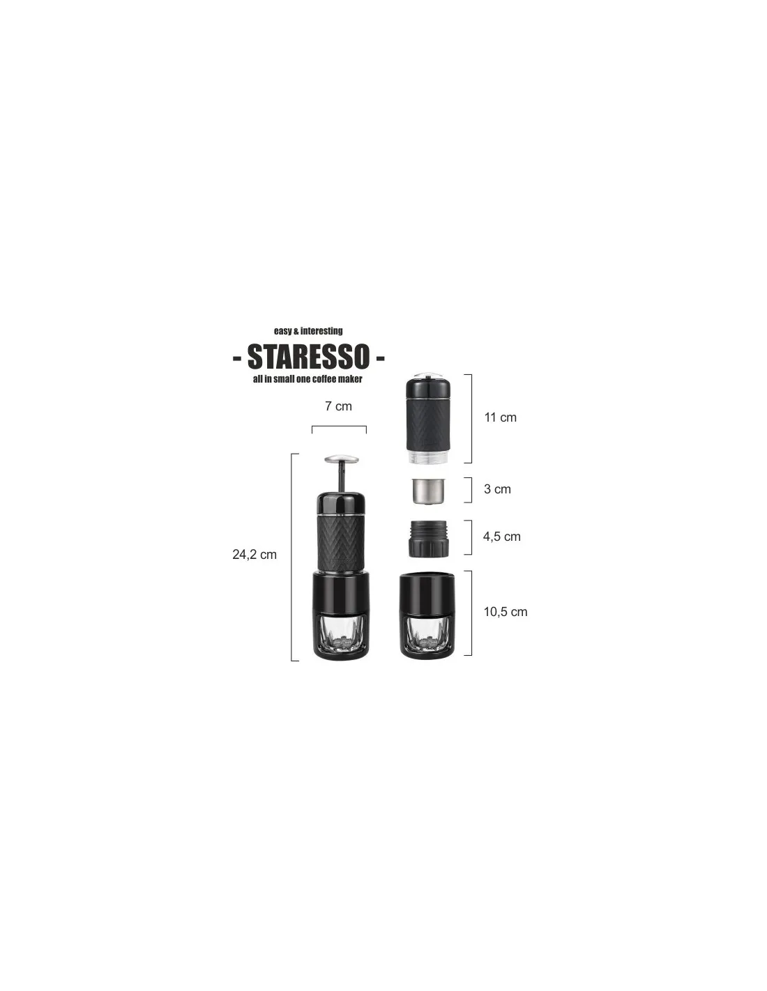 Aparatul de cafea Staresso Classic poate fi luat cu ușurință cu dvs. în deplasările la birou, în călătorii și în excursii cu cortul, datorită dimensiunilor sale compacte și greutății reduse. În doar 2 minute vă puteți prepara espresso-ul preferat, americano etc. Dacă nu aveți chef de cafea pentru o perioadă de timp, puteți prepara și un ceai de înaltă calitate .