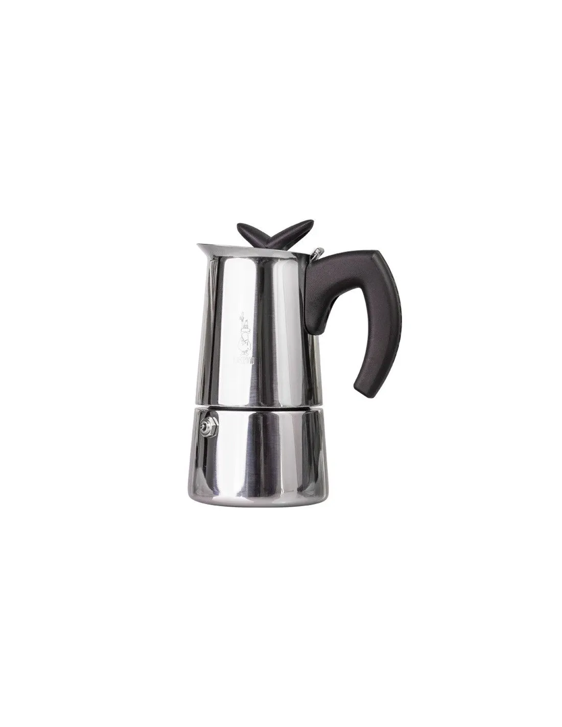 Oală moca elegantă din oțel inoxidabil Bialetti Musa Restyling de la compania italiană Bialetti pentru prepararea tradițională a 4 cești de cafea mai tare (aprox. 150 ml). Potrivit și pentru plitele cu inducție!
