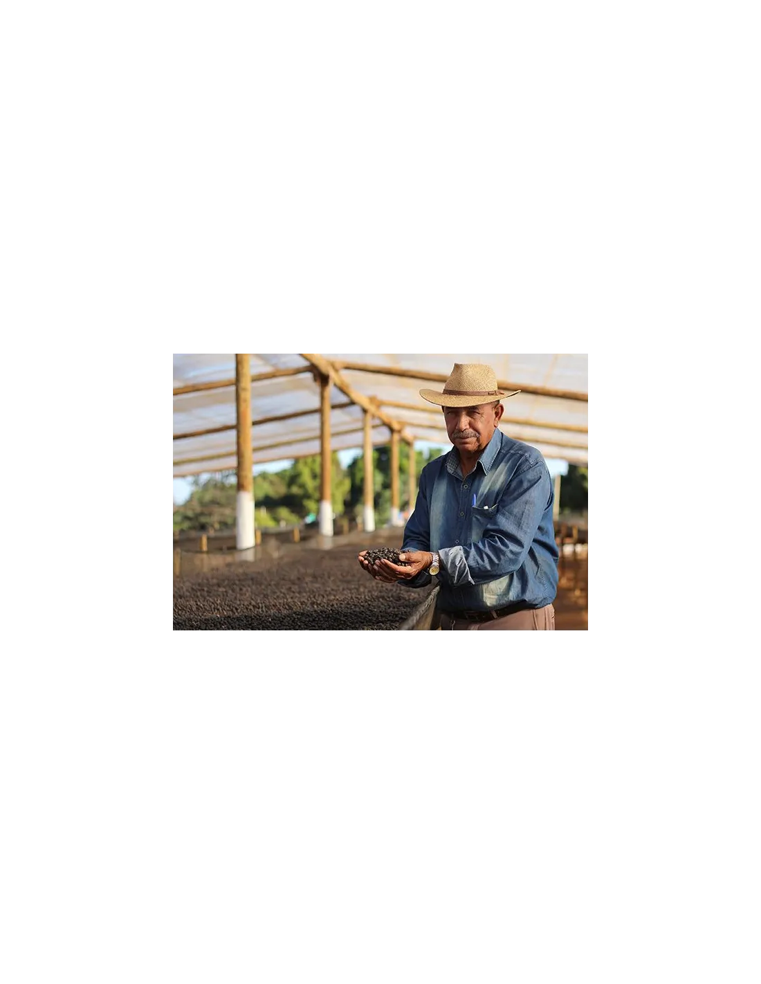 Acesta provine de la noii noștri parteneri, frații Andrade, care continuă o tradiție de familie în cultivarea cafelei în statul Minas Gerais de peste un secol. Dar, în anii '90, au decis să se orienteze către cafele de înaltă calitate. Au avut numeroase succese la licitații și concursuri de prestigiu - inclusiv câștigarea Cupei de Excelență Brazilia Natural în 2018. Nanolotul nostru din soiul Yellow Catuaí a fost prelucrat prin fermentație anaerobă, ceea ce a trezit un caracter cu adevărat unic al cafelei. În aromă se simte imediat coniacul și în gust se simte o aromă de ciocolată tipică, completată de o aciditate lungă și distinctivă care amintește de cireșele negre. Dacă sunteți un fan al cafelelor naturale, nu veți dori să ratați această nouă lansare!