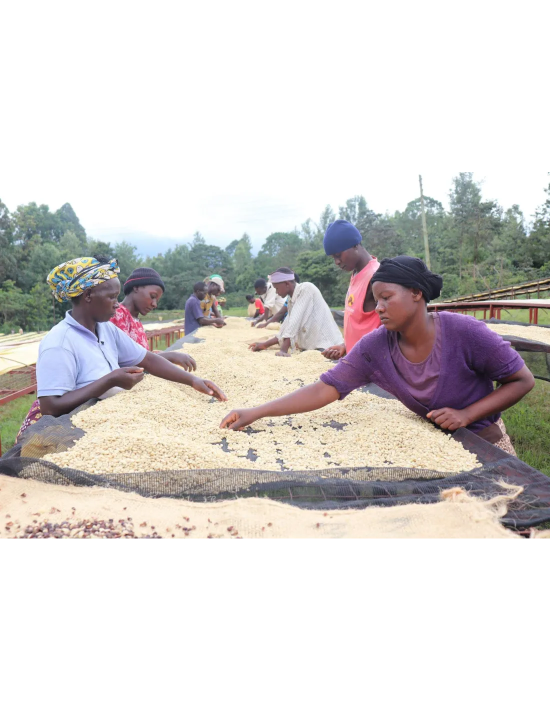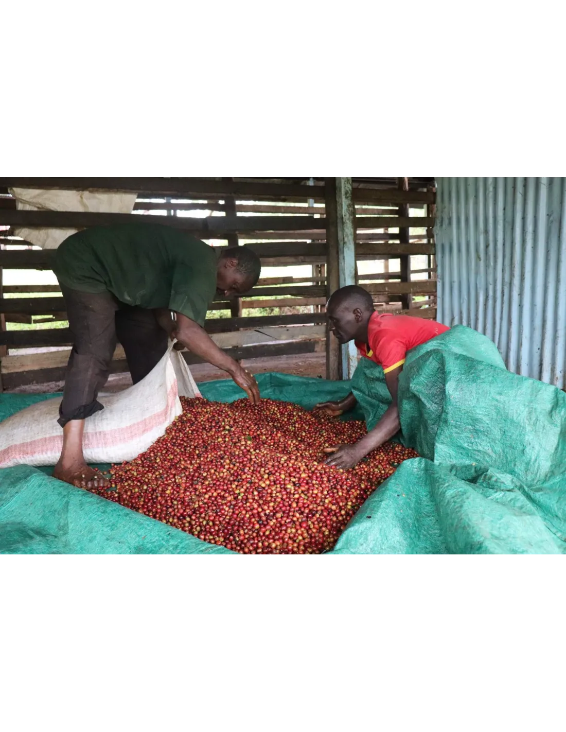 Uzina de prelucrare Mutitu funcționează din 1963. În prezent, aceasta asigură procesarea pentru cei 1 250 de membri ai cooperativei, care de obicei dețin doar o cincime de hectar de teren. Dar toate operează în inima faimoasei regiuni Kirinyaga, chiar la poalele celui de-al doilea cel mai înalt munte din Africa, Muntele Kenya. În plus, datorită substratului vulcanic, toți arborii de cafea din zonă au o rezervă amplă de nutrienți minerali. Așadar, după spălarea dublă tradițională kenyană, vă așteaptă un lot minunat de boabe perlate cu caracter de coacăze negre și citrice. Boabele de perlă în sine sunt create prin dezvoltarea unei singure boabe în cireșe în loc de două, care sunt mai mici și mai rotunde - amintind de perle! Am selectat noi înșine mutita anul trecut, în laboratorul Dormans Coffee din Nairobi. Datorită ambalării în vid a fasolei verzi, aceasta este la fel de suculentă ca atunci când am gustat-o pentru prima dată în Kenya.