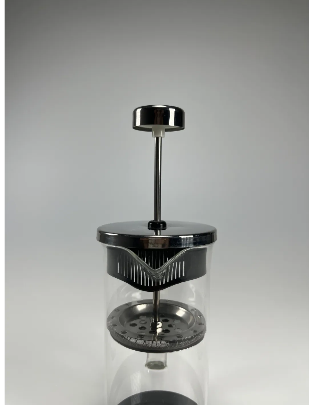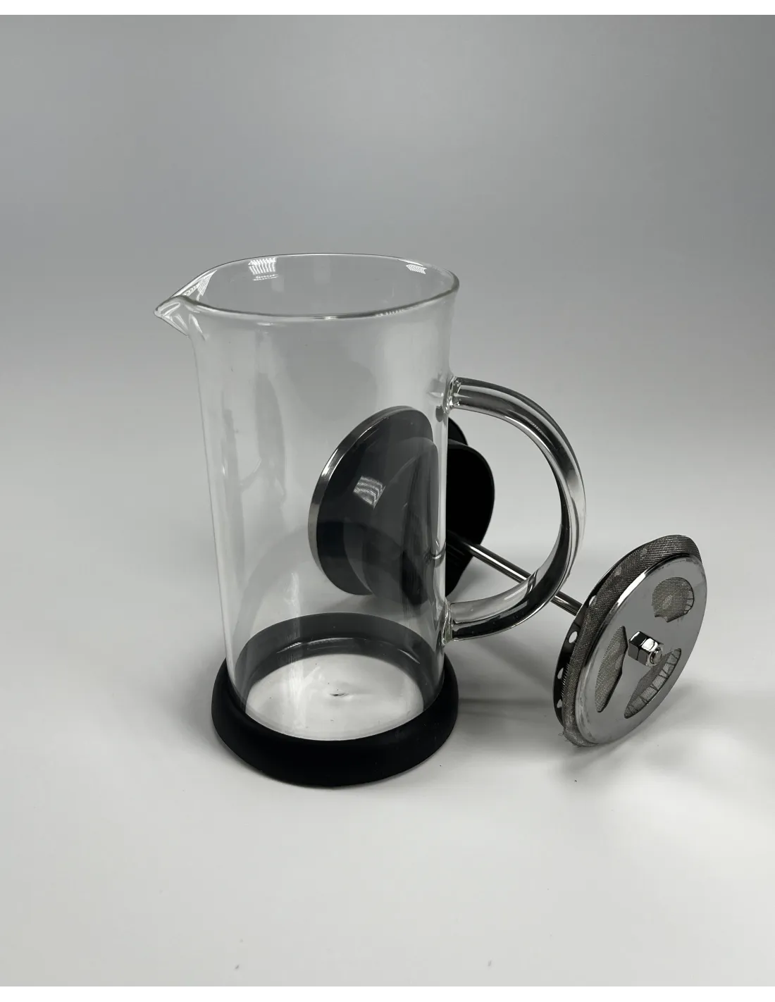 Ceainicul French press este fabricat din sticlă borosilicată care poate rezista la temperaturi de până la 120 de grade. Pistonul și capacul sunt fabricate din oțel inoxidabil, astfel încât nu există riscul ca pistonul să se spargă și altele asemenea. Un al doilea filtru este integrat în interiorul capacului. În partea de jos a ceainicului există un tampon de cauciuc care servește ca izolație. Acesta poate fi îndepărtat cu ușurință.